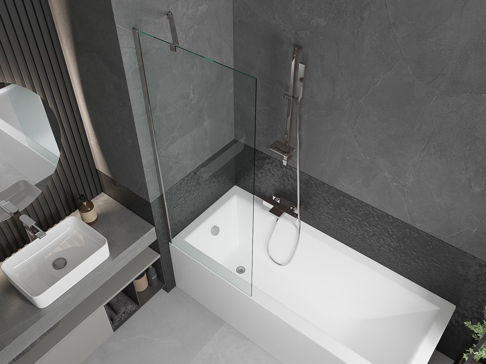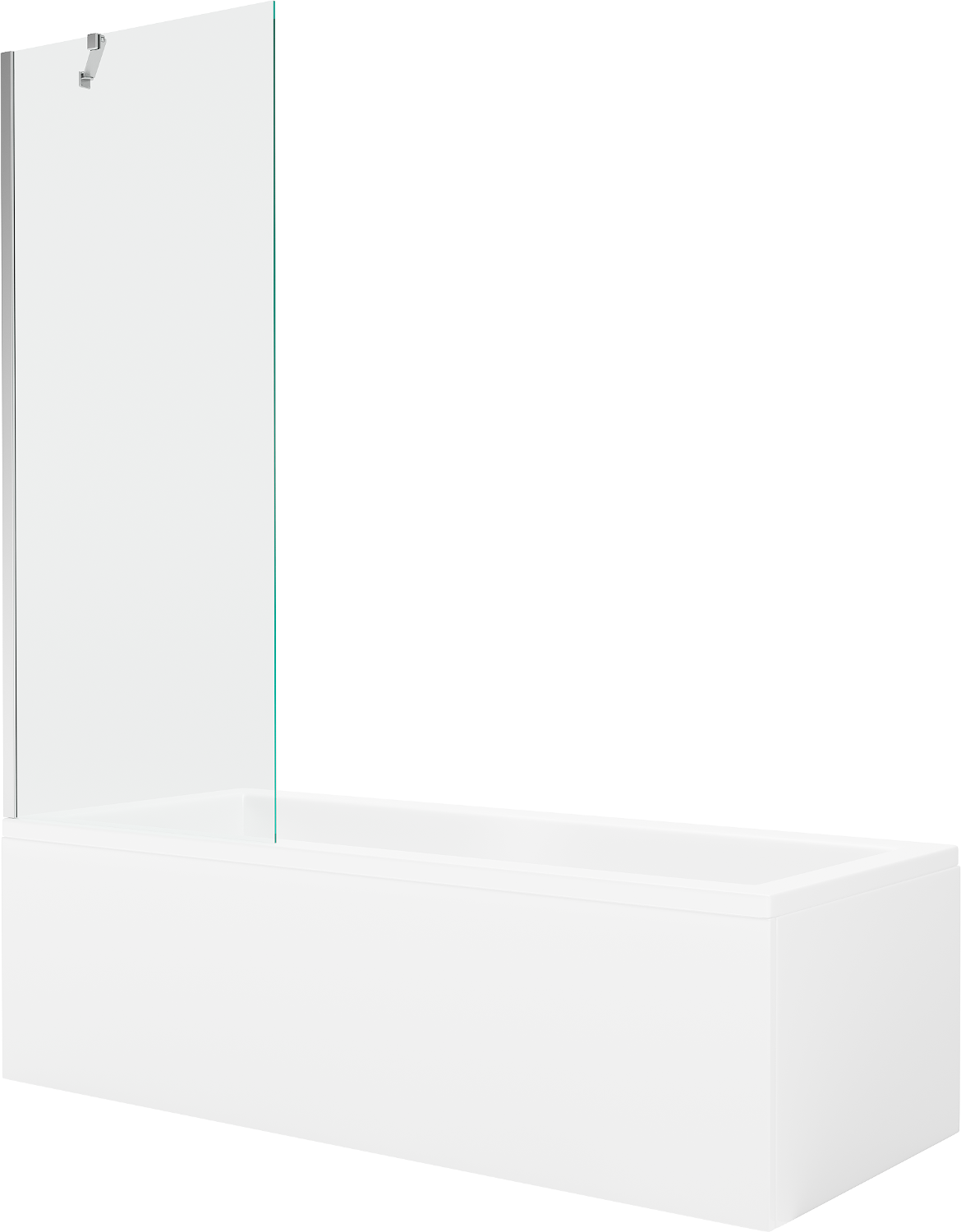 Mexen Cubik wanna prostokątna 150 x 70 cm z obudową i parawanem 1-skrzydłowym 70 cm, transparent, chrom - 550315070X9507000001