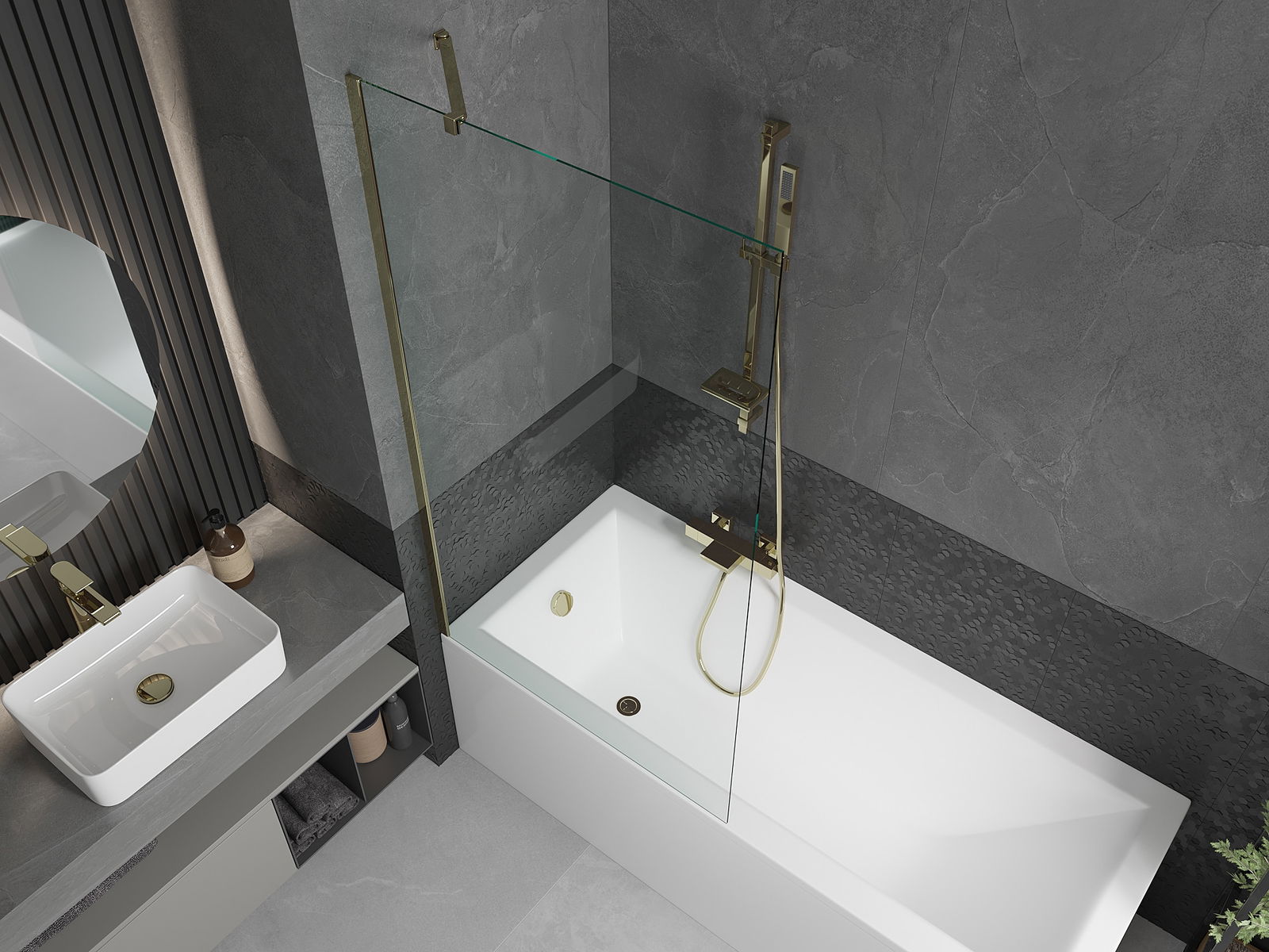 Mexen Cubik wanna prostokątna 150 x 70 cm z obudową i parawanem 1-skrzydłowym 90 cm, transparent, złoty - 550315070X9509000050