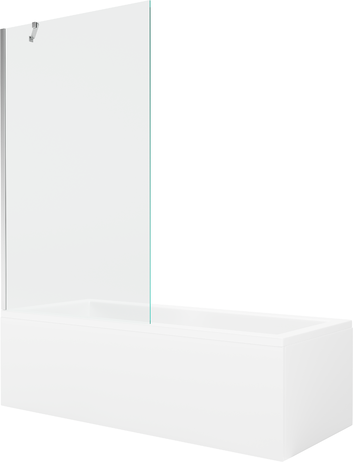 Mexen Cubik wanna prostokątna 160 x 70 cm z obudową i parawanem 1-skrzydłowym 100 cm, transparent, chrom - 550316070X9510000001