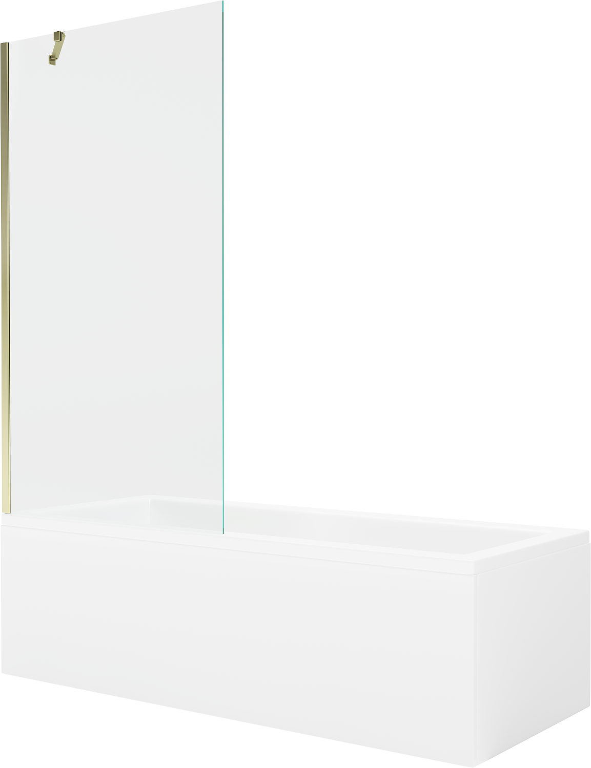 Mexen Cubik wanna prostokątna 160 x 70 cm z obudową i parawanem 1-skrzydłowym 90 cm, transparent, złoty - 550316070X9509000050