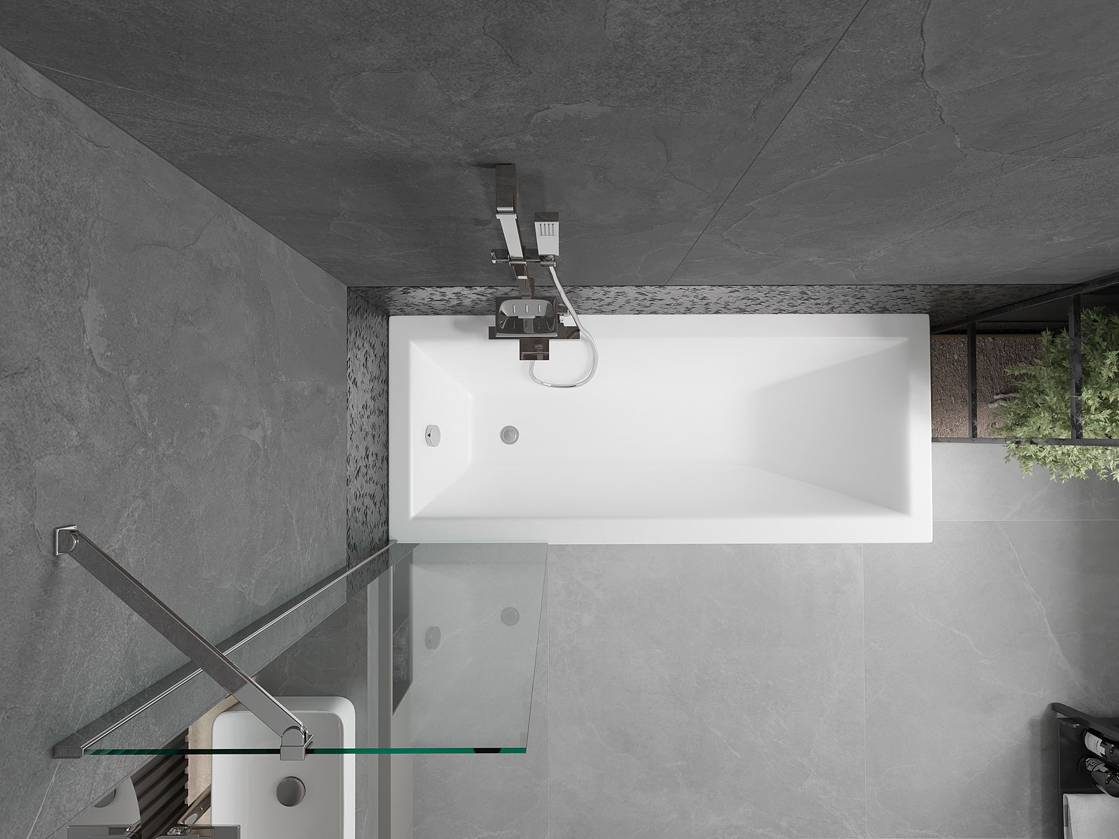 Mexen Cubik wanna prostokątna 170 x 70 cm z obudową i parawanem 1-skrzydłowym 50 cm, transparent, chrom - 550317070X9505000001