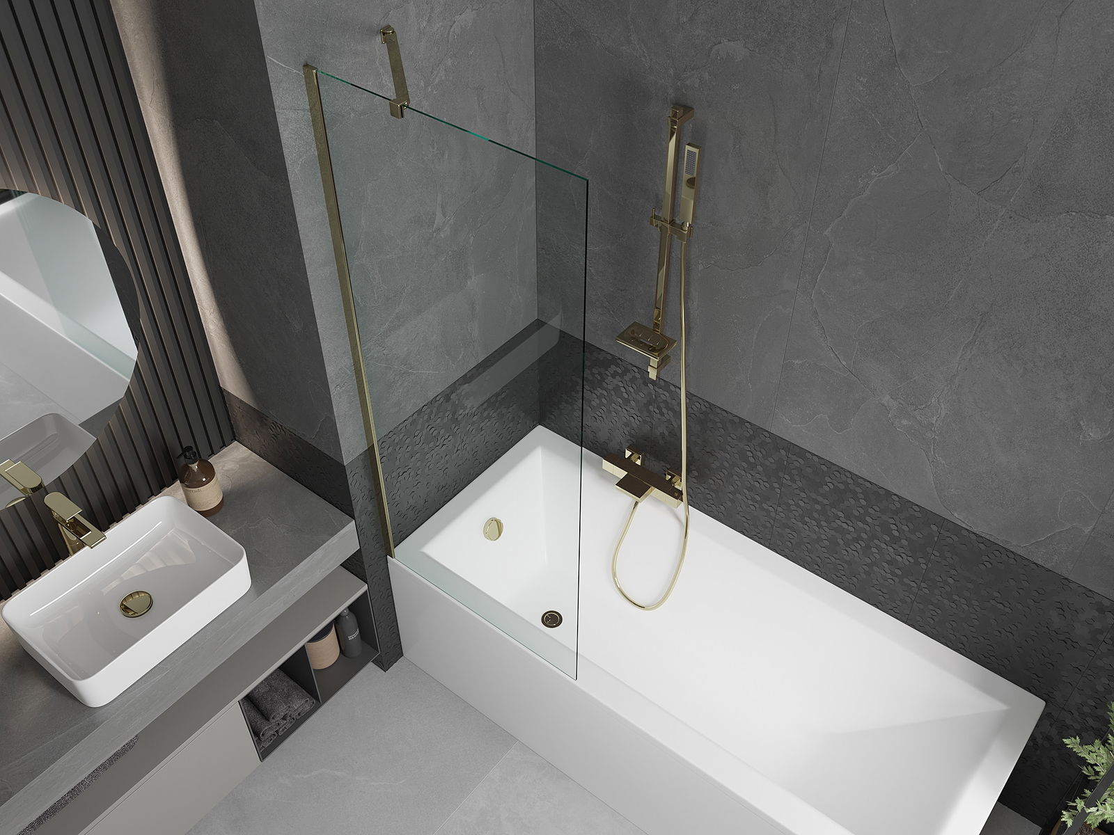 Mexen Cubik wanna prostokątna 170 x 70 cm z obudową i parawanem 1-skrzydłowym 70 cm, transparent, złoty - 550317070X9507000050
