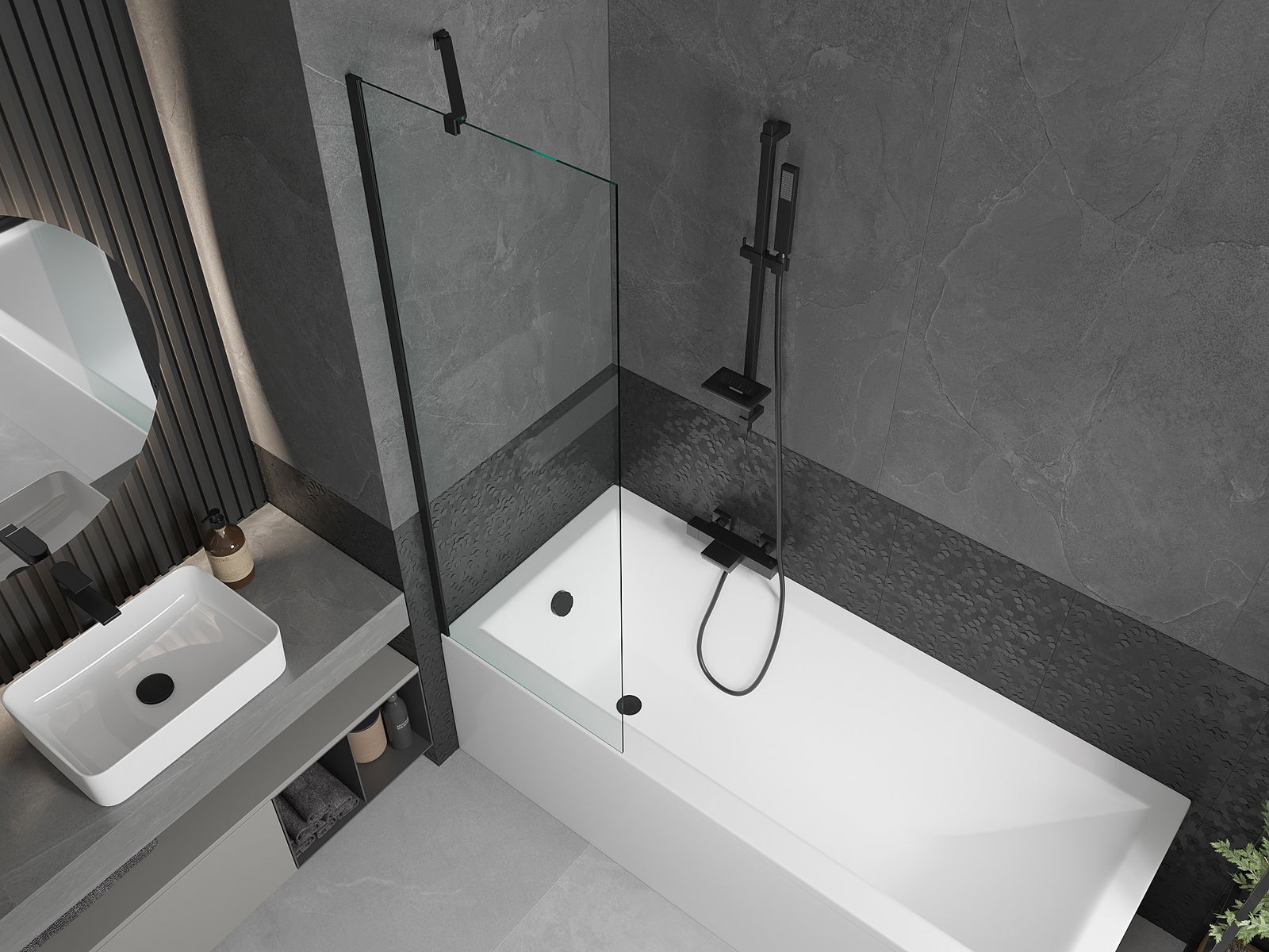 Mexen Cubik wanna prostokątna 170 x 70 cm z obudową i parawanem 1-skrzydłowym 60 cm, transparent, czarny - 550317070X9506000070