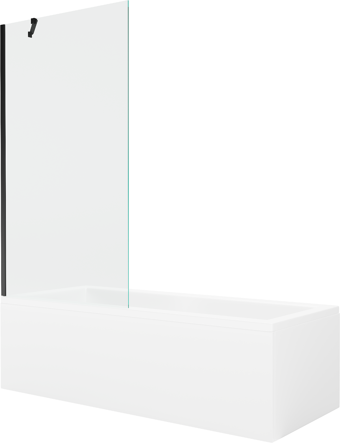 Mexen Cubik wanna prostokątna 170 x 70 cm z obudową i parawanem 1-skrzydłowym 90 cm, transparent, czarny - 550317070X9509000070