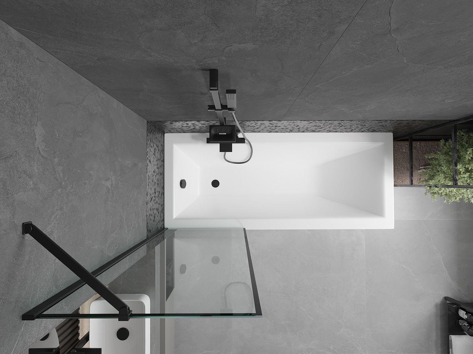 Mexen Cubik wanna prostokątna 170 x 70 cm z obudową i parawanem 1-skrzydłowym 60 cm, czarny wzór - 550317070X9506007070