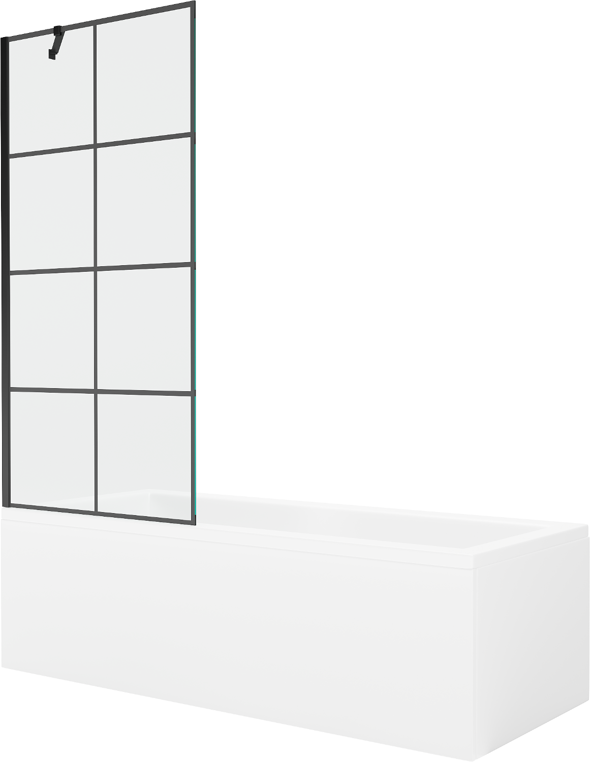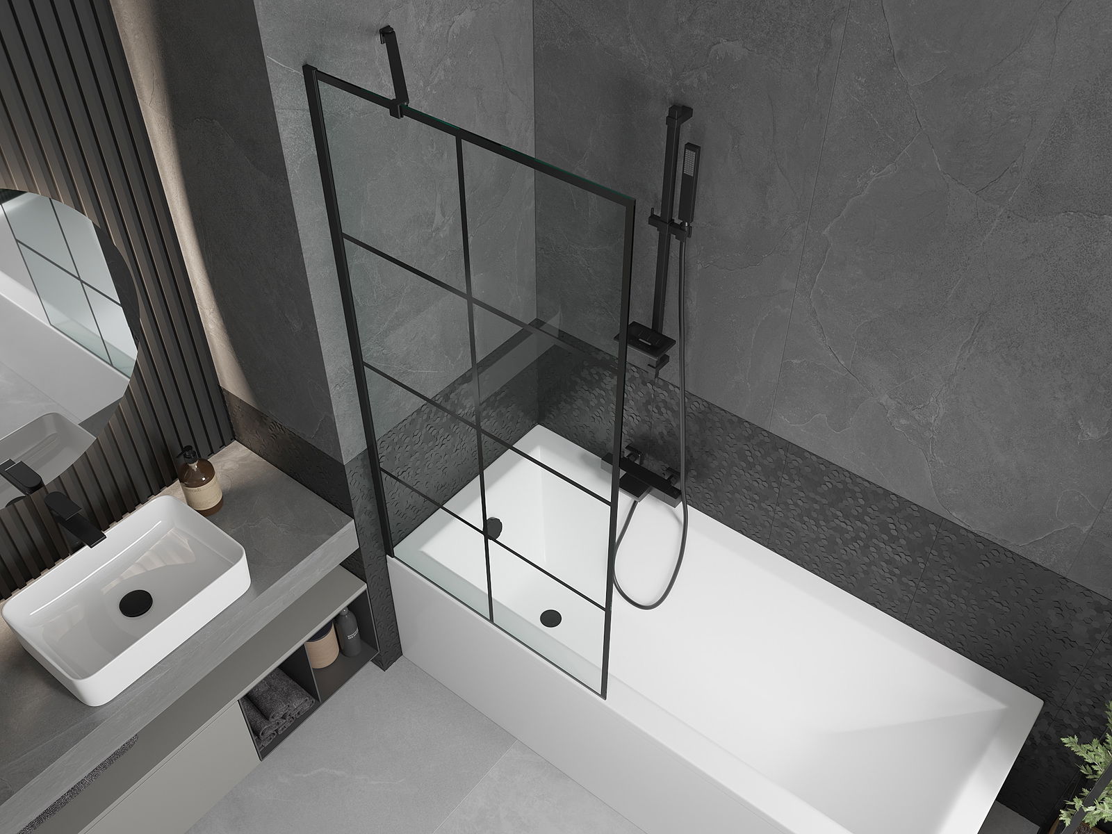 Mexen Cubik wanna prostokątna 170 x 70 cm z obudową i parawanem 1-skrzydłowym 80 cm, czarny wzór - 550317070X9508007077