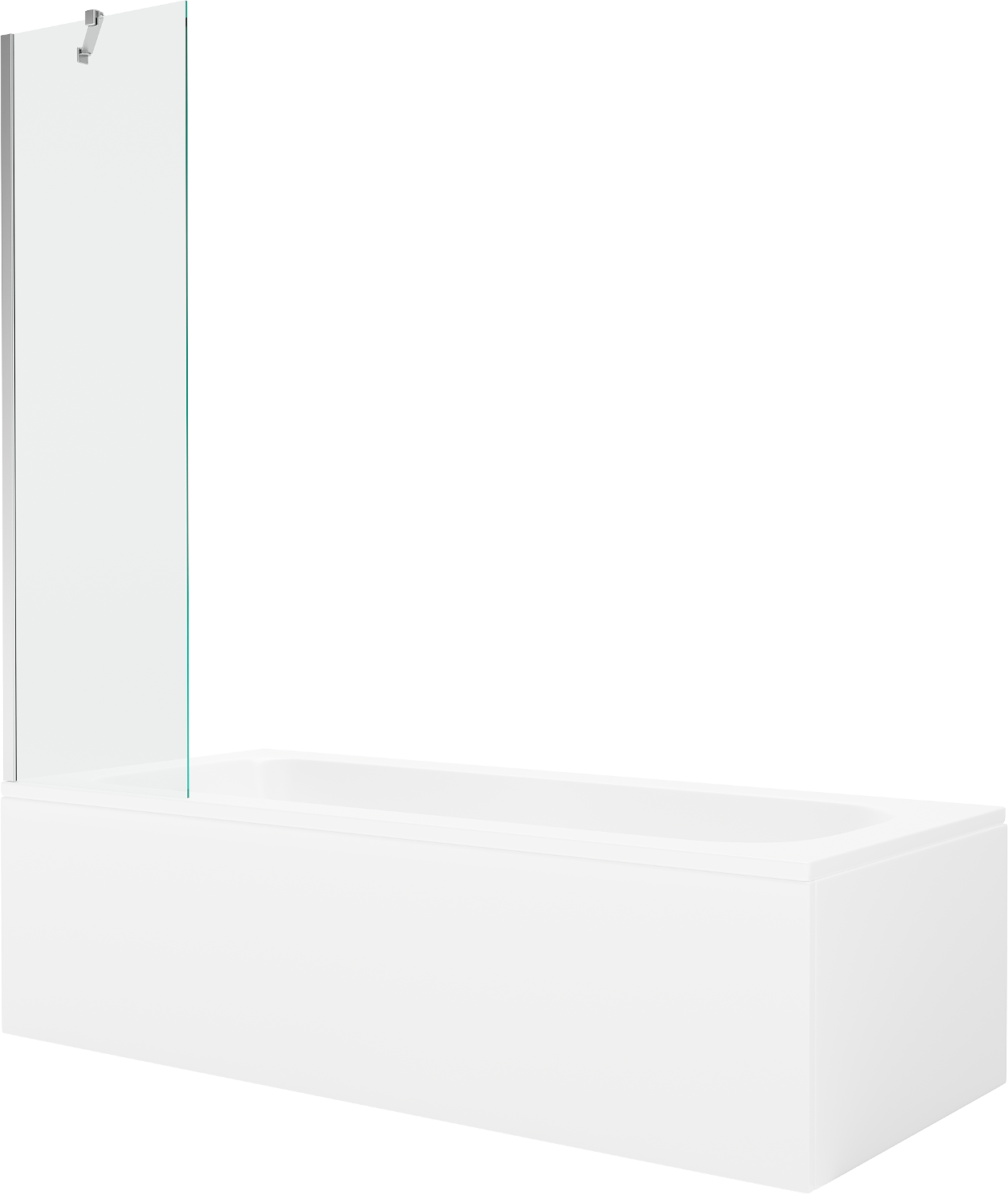 Mexen Vega wanna prostokątna 150 x 70 cm z obudową i parawanem 1-skrzydłowym 50 cm, transparent, chrom - 550115070X9505000001