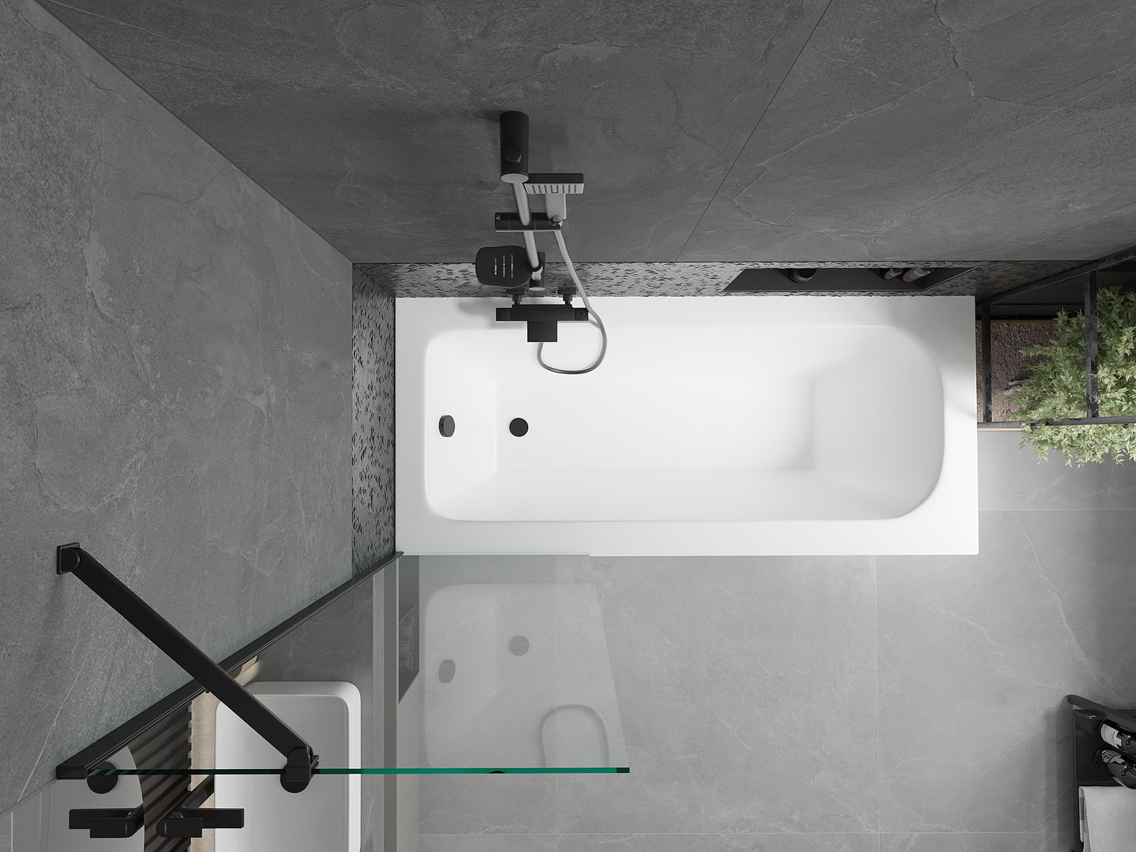 Mexen Vega wanna prostokątna 150 x 70 cm z obudową i parawanem 1-skrzydłowym 60 cm, transparent, czarny - 550115070X9506000070