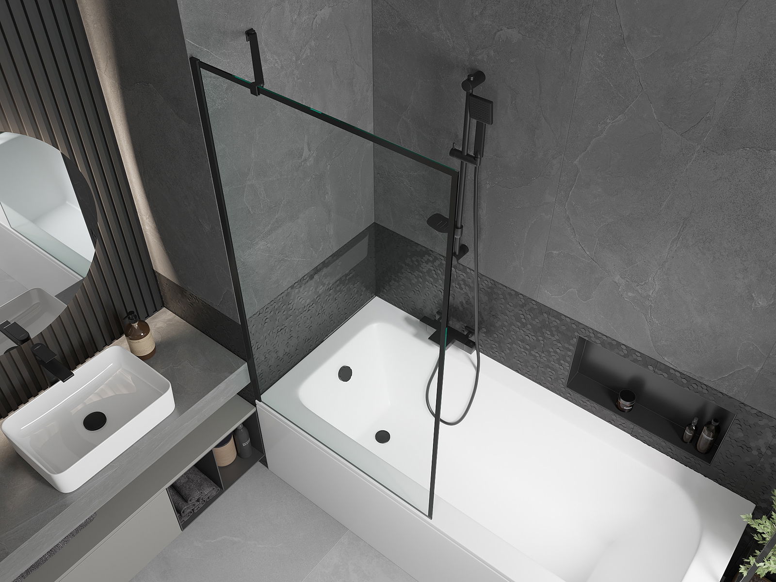 Mexen Vega wanna prostokątna 150 x 70 cm z obudową i parawanem 1-skrzydłowym 90 cm, czarny wzór - 550115070X9509007070