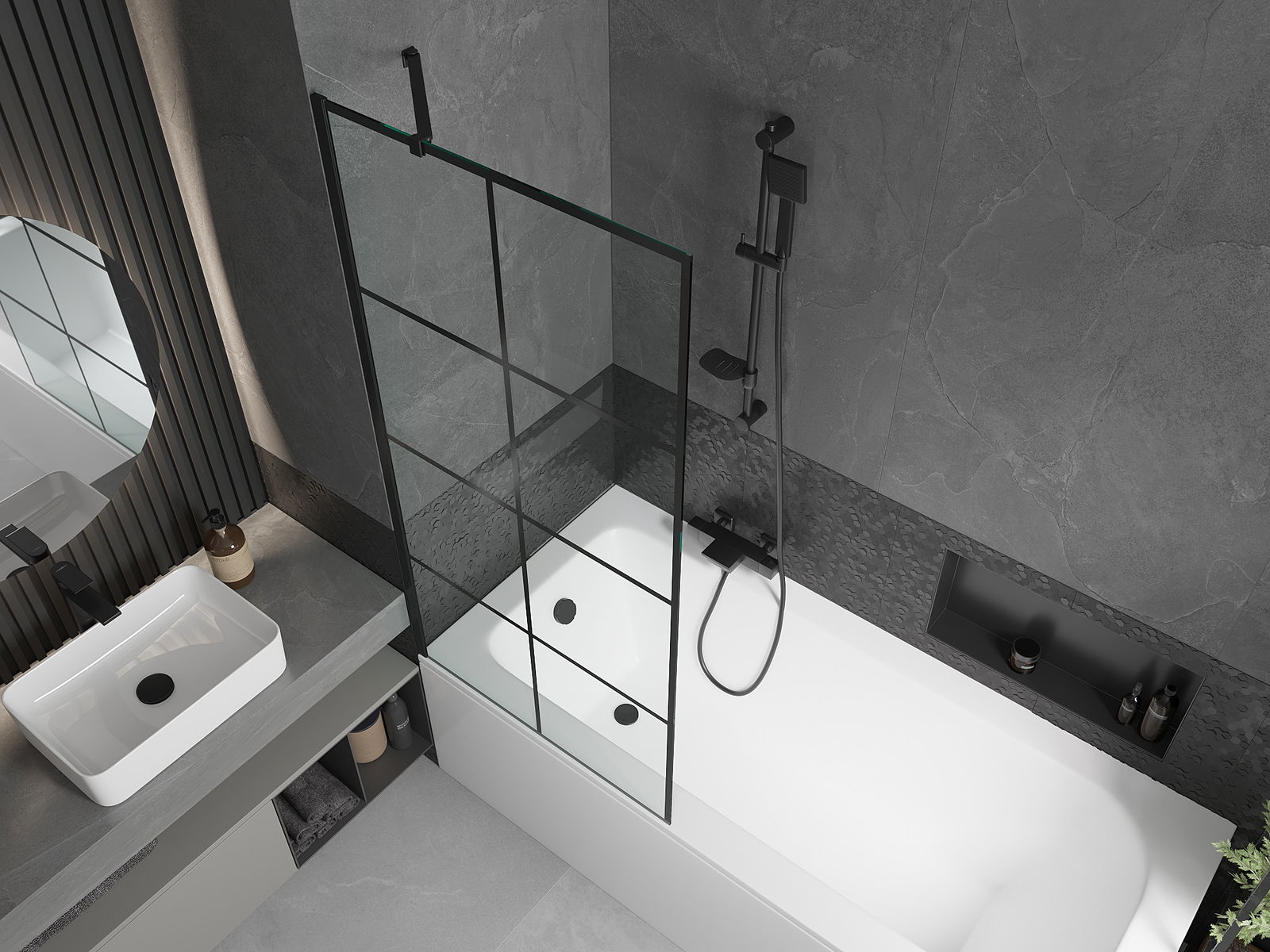 Mexen Vega wanna prostokątna 150 x 70 cm z obudową i parawanem 1-skrzydłowym 80 cm, czarny wzór - 550115070X9508007077