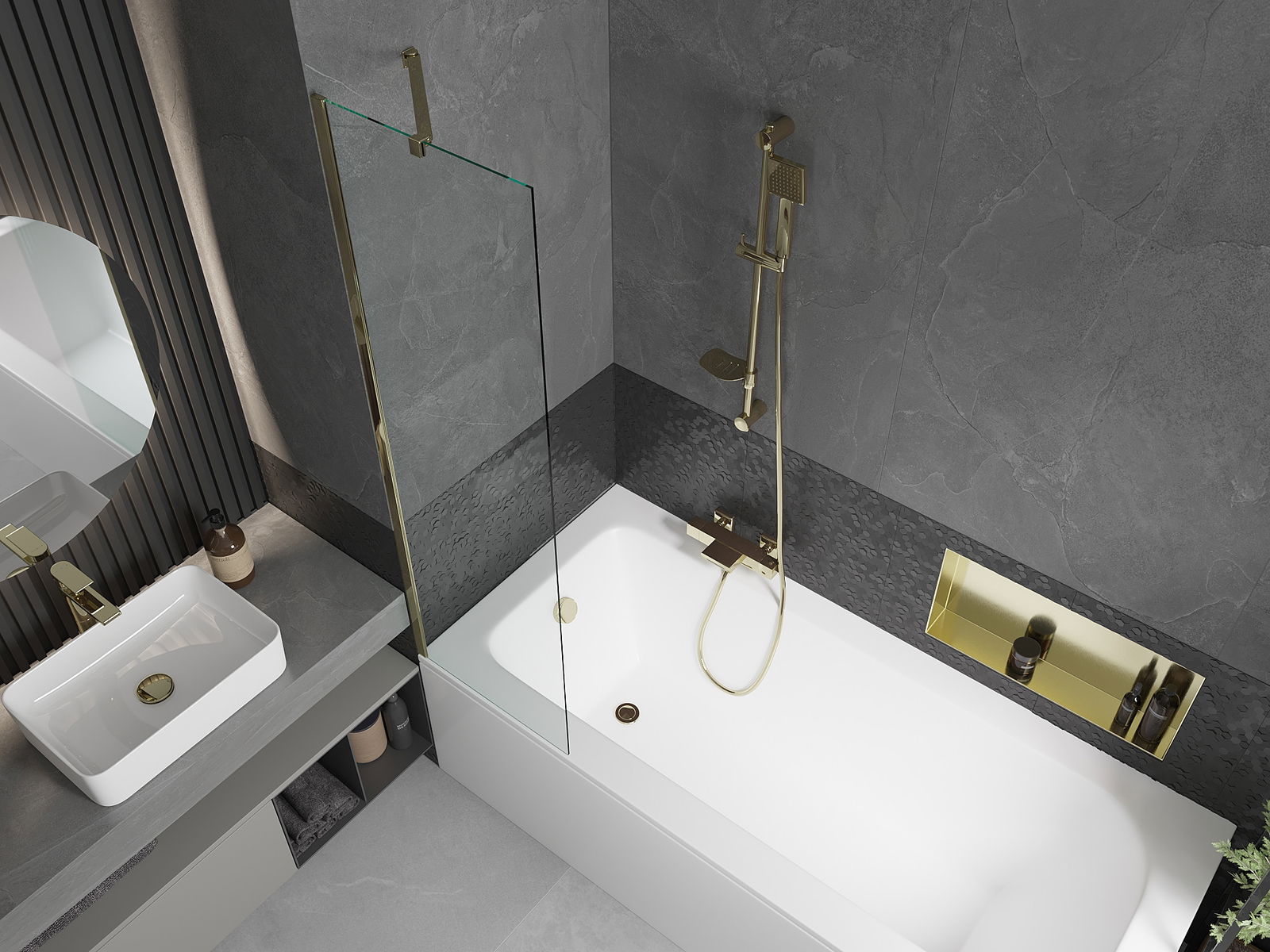 Mexen Vega wanna prostokątna 160 x 70 cm z obudową i parawanem 1-skrzydłowym 50 cm, transparent, złoty - 550116070X9505000050