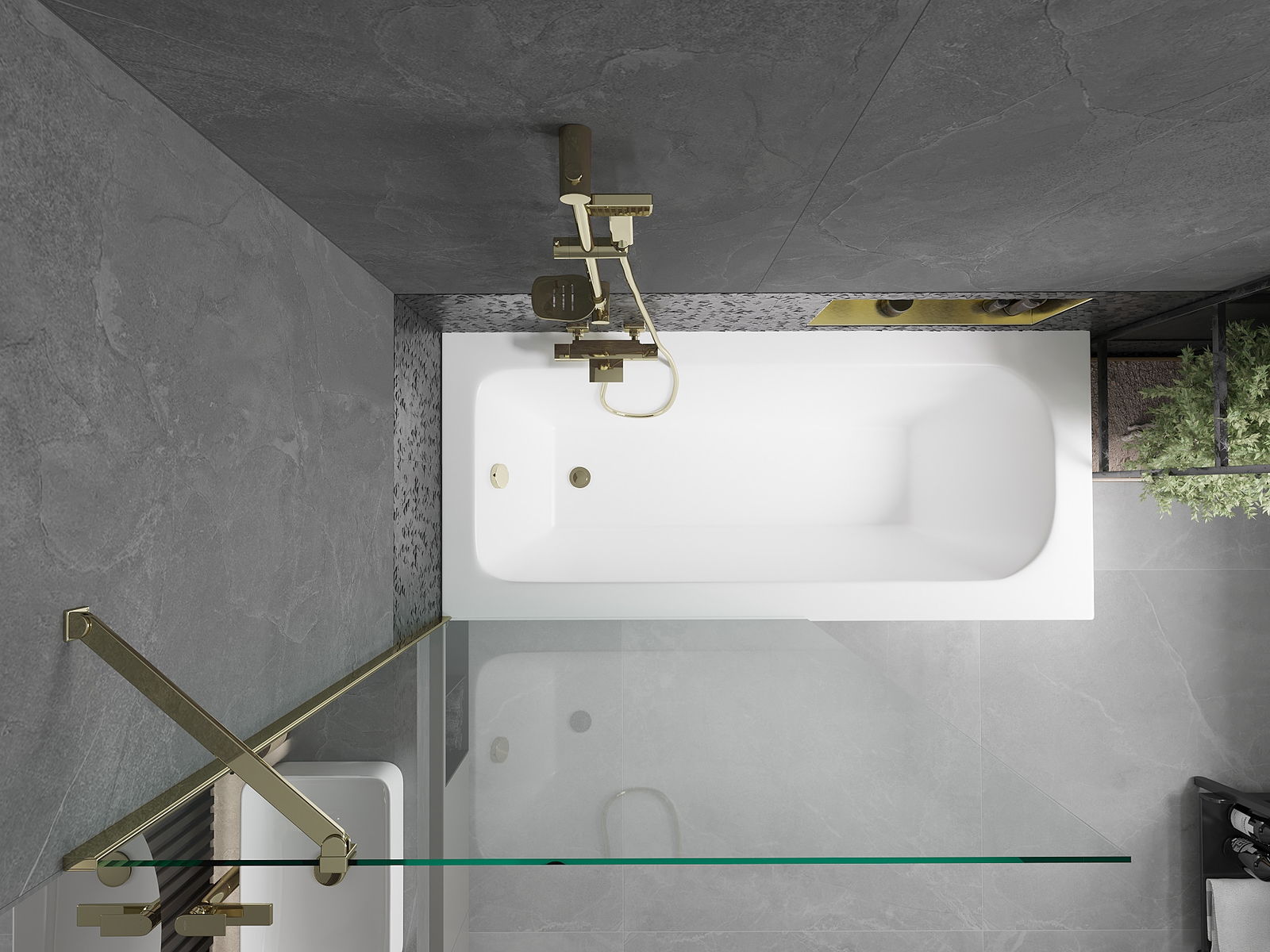 Mexen Vega wanna prostokątna 160 x 70 cm z obudową i parawanem 1-skrzydłowym 100 cm, transparent, złoty - 550116070X9510000050