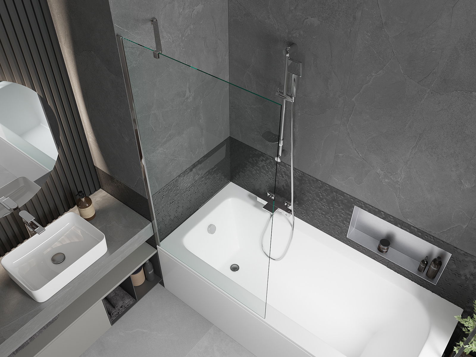 Dzięki zastosowaniu uniwersalnego systemu mocowania, parawan może być zamontowany z prawej lub z lewej strony, zależnie od potrzeb. W ten sposób możesz z łatwością zaprojektować prysznic dopasowany do przestrzeni łazienki.