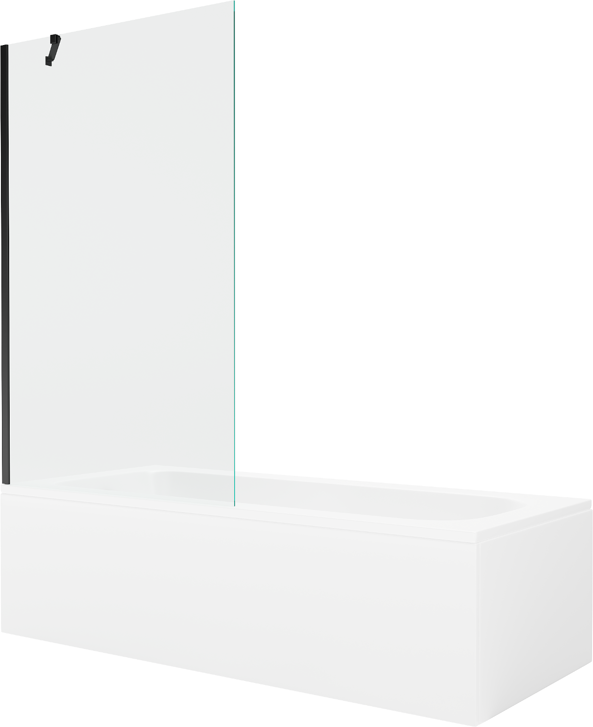 Mexen Vega wanna prostokątna 170 x 70 cm z obudową i parawanem 1-skrzydłowym 100 cm, transparent, czarny - 550117070X9510000070