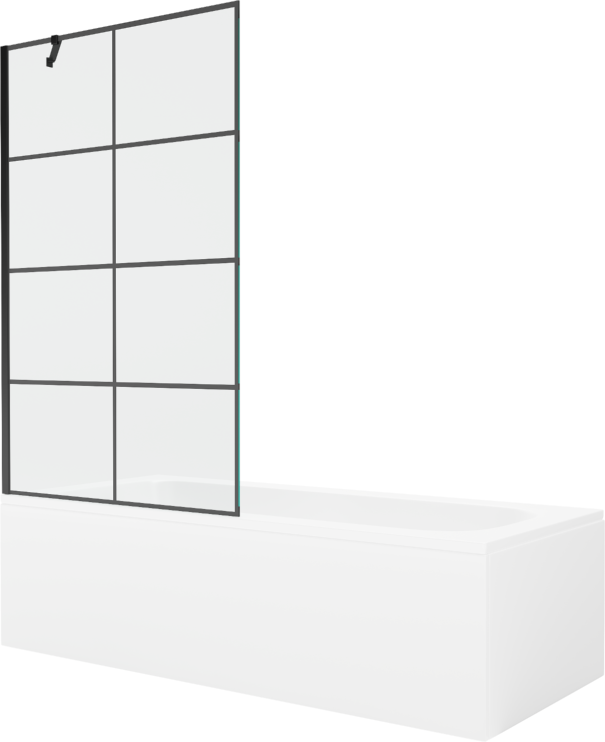 Mexen Vega wanna prostokątna 170 x 70 cm z obudową i parawanem 1-skrzydłowym 100 cm, czarny wzór - 550117077X9510007077
