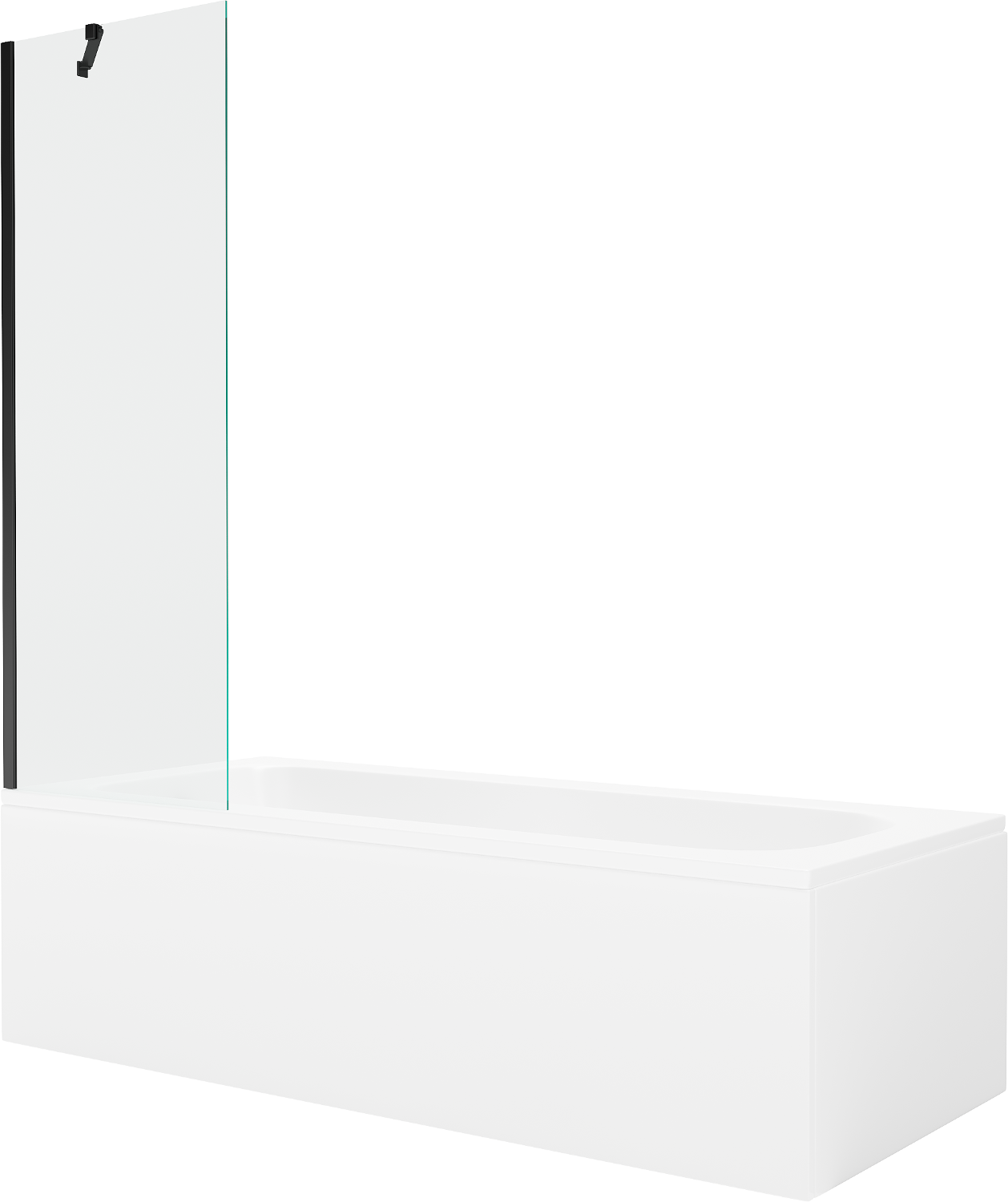 Mexen Vega wanna prostokątna 180 x 80 cm z obudową i parawanem 1-skrzydłowym 60 cm, transparent, czarny - 550118080X9506000070