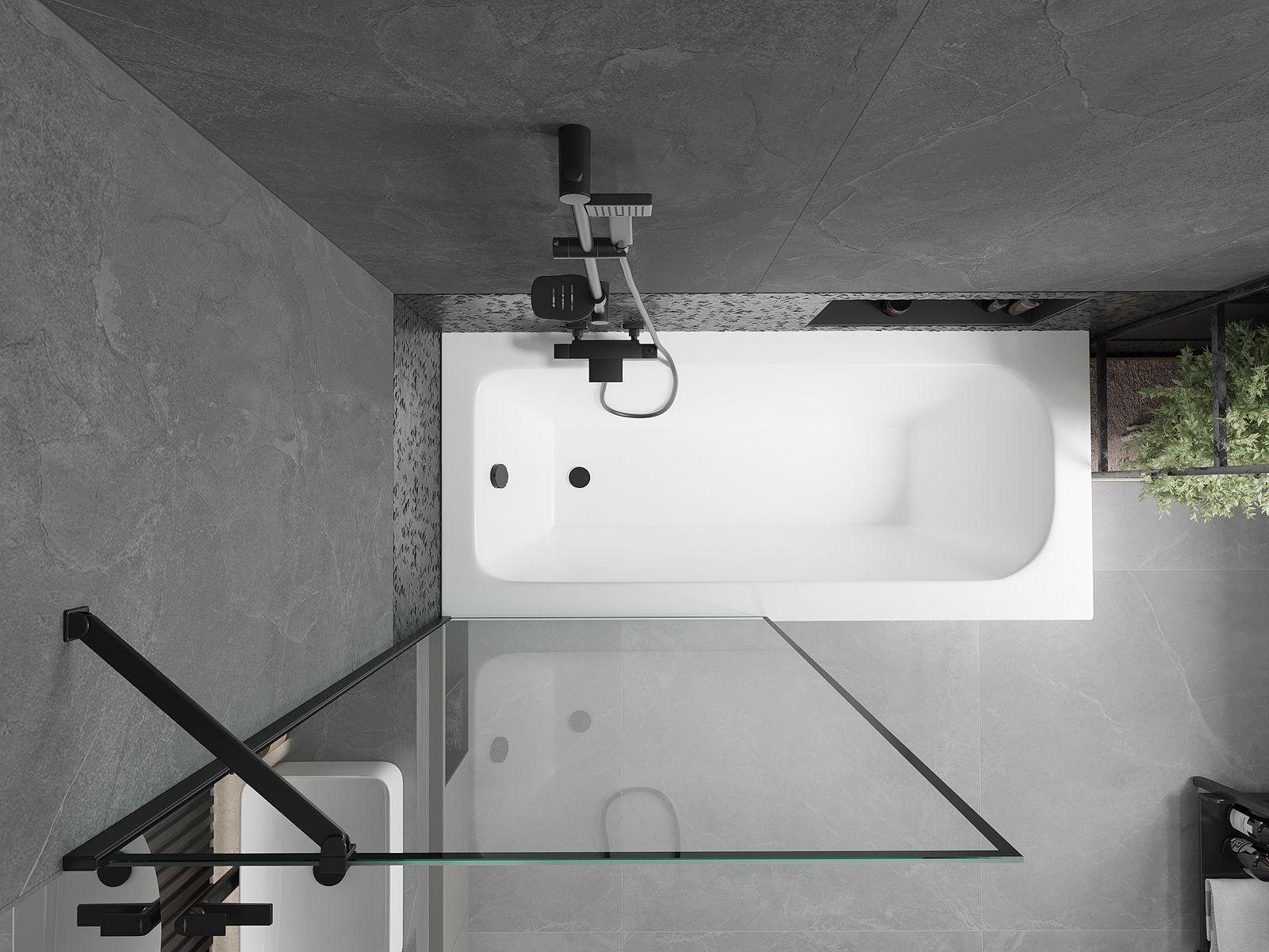 Mexen Vega wanna prostokątna 180 x 80 cm z obudową i parawanem 1-skrzydłowym 90 cm, czarny wzór - 550118080X9509007070