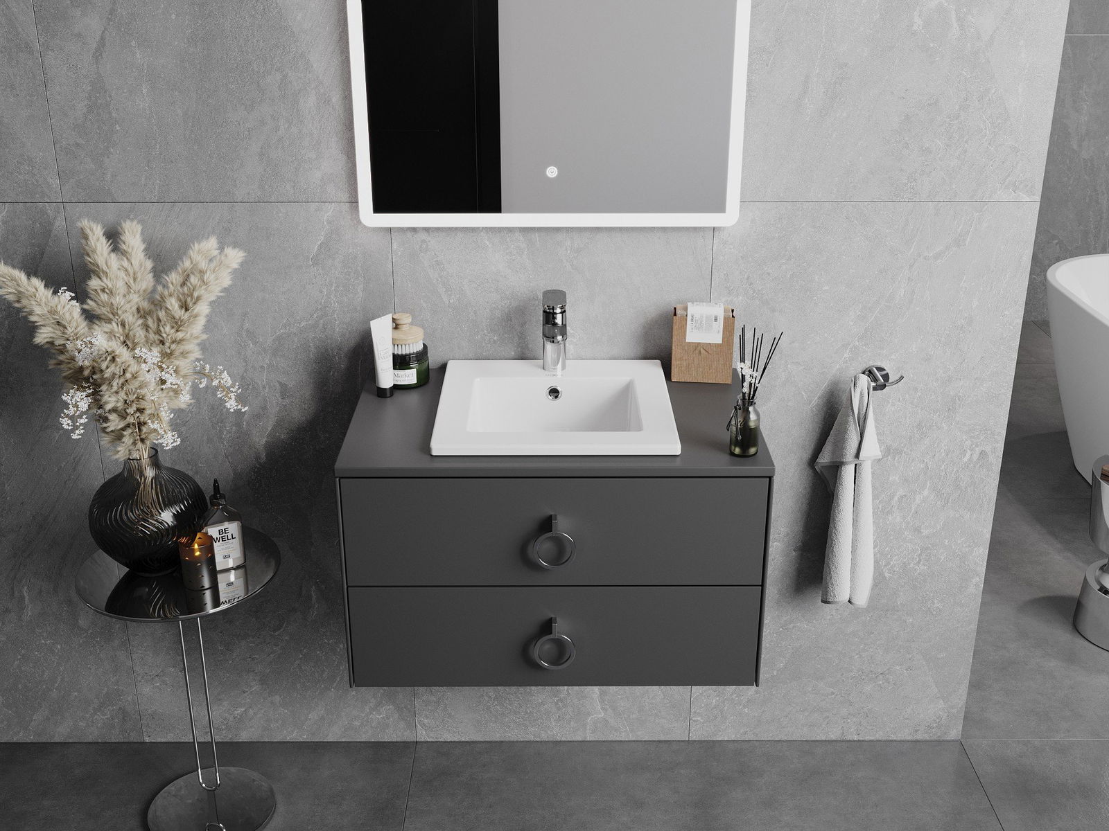Umywalka posiada otwór, w którym możemy zamontować baterię. Pozwala to zaoszczędzić cenną przestrzeń w łazience oraz podkreślić jej estetykę. Rozwiązanie to umożliwia również łatwiejsze utrzymanie czystości wokół umywalki.