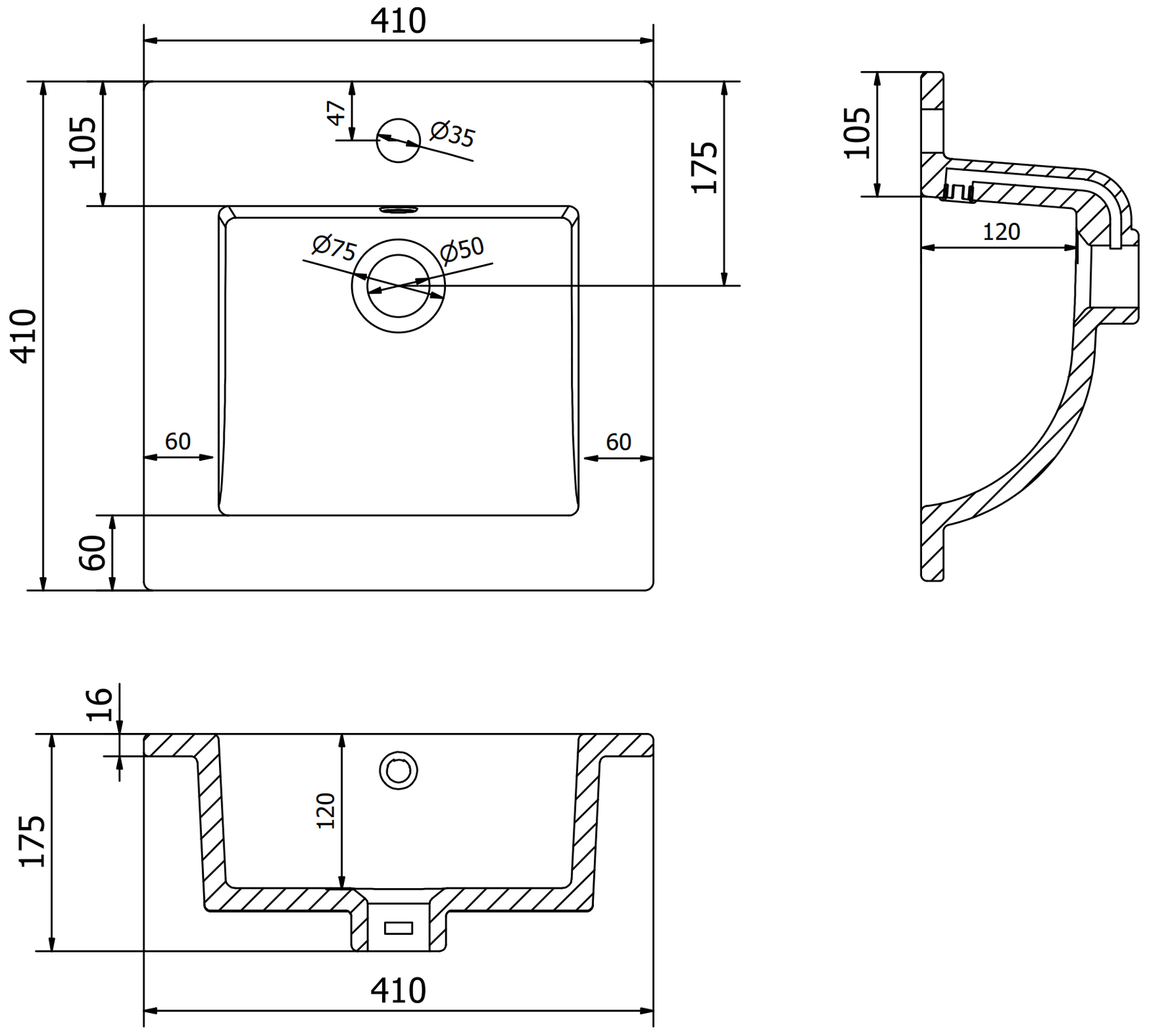 Otwór przelewowy: Tak