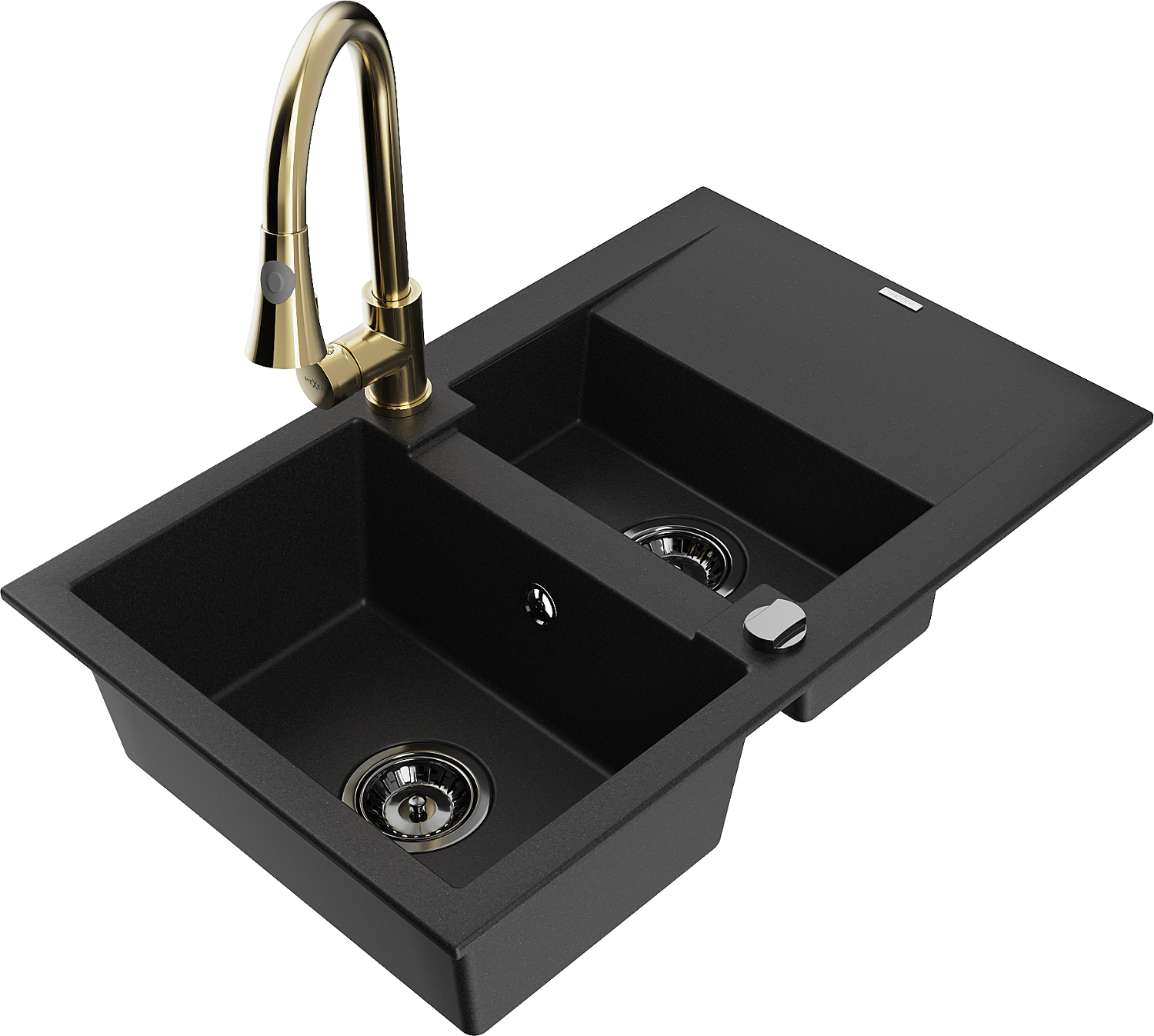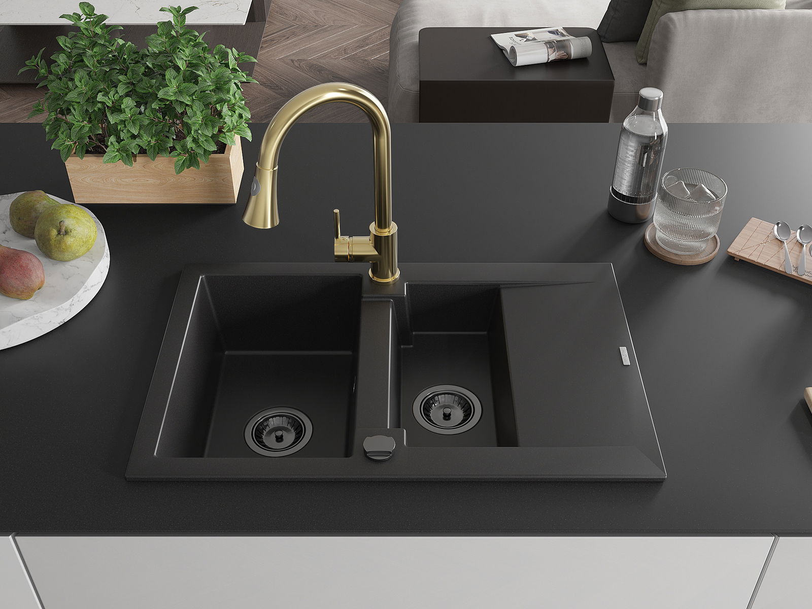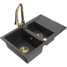 Mexen Gaspar zlewozmywak granitowy 1,5-komorowy z ociekaczem i baterią kuchenną Elia, czarny - 6507-77-670101-50-B