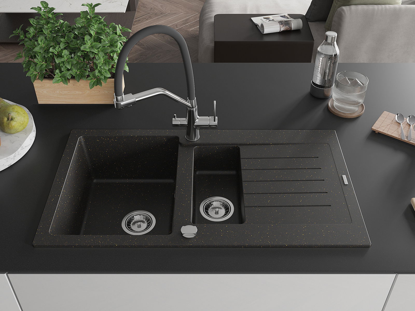Dobrze zabezpieczona powierzchnia zlewozmywaka hamuje wnikanie zabrudzeń do jego wewnętrznych struktur. Dzięki temu utrzymanie zlewu w czystości jest jeszcze łatwiejsze, a jego powierzchnia zachowuje swoją estetykę na dłużej.