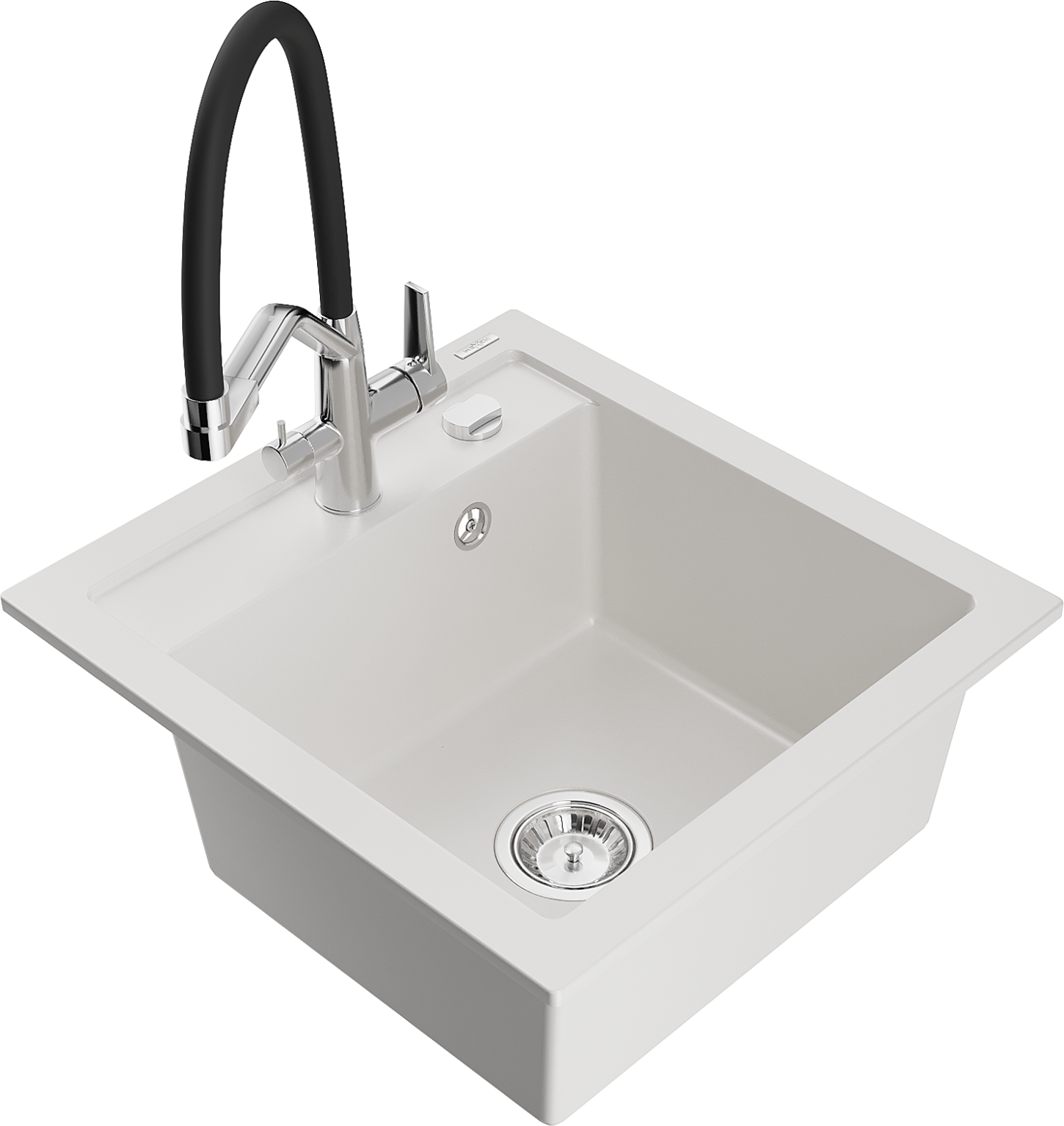 Mexen Vito zlewozmywak granitowy 1-komorowy z baterią kuchenną Duo, biały - 6503-20-671701-07