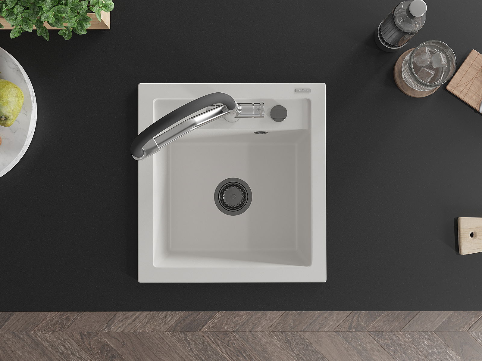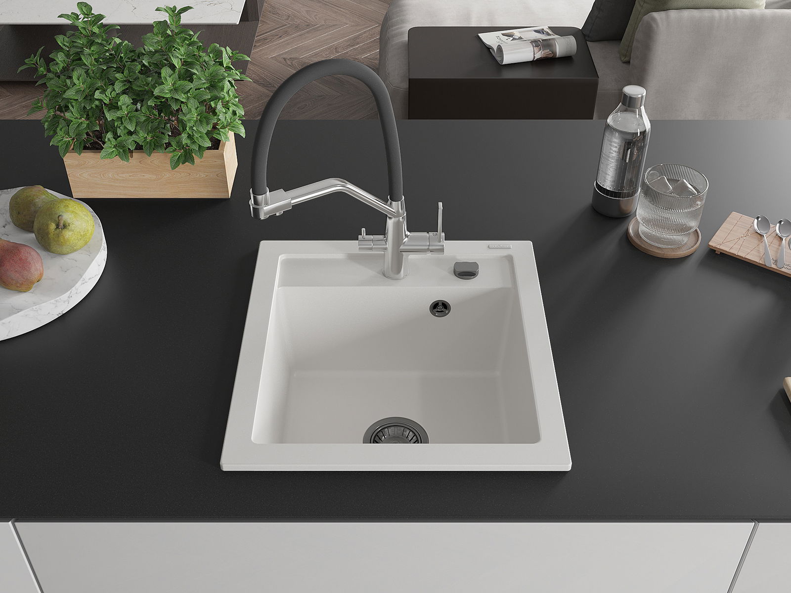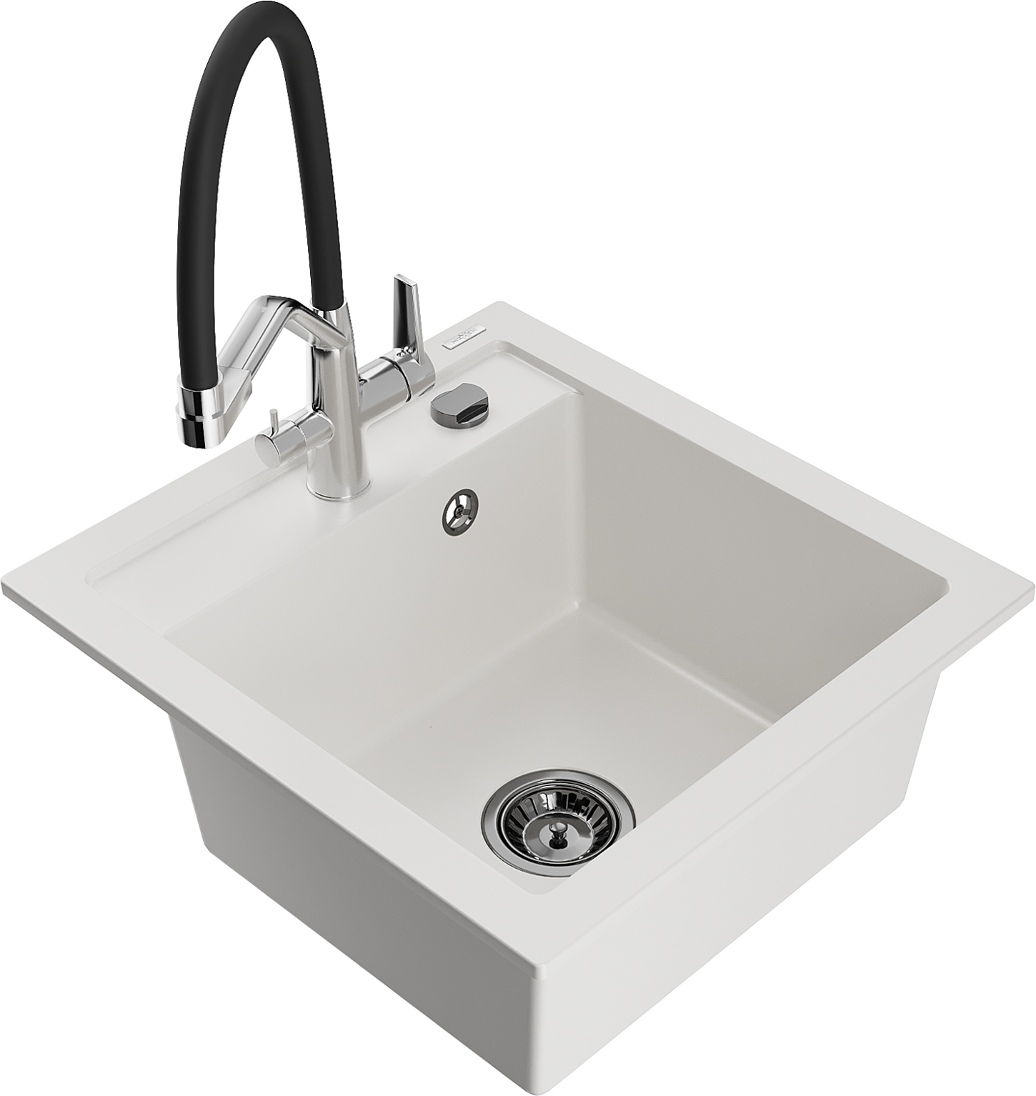 Mexen Vito zlewozmywak granitowy 1-komorowy z baterią kuchenną Duo, biały - 6503-20-671701-07-B