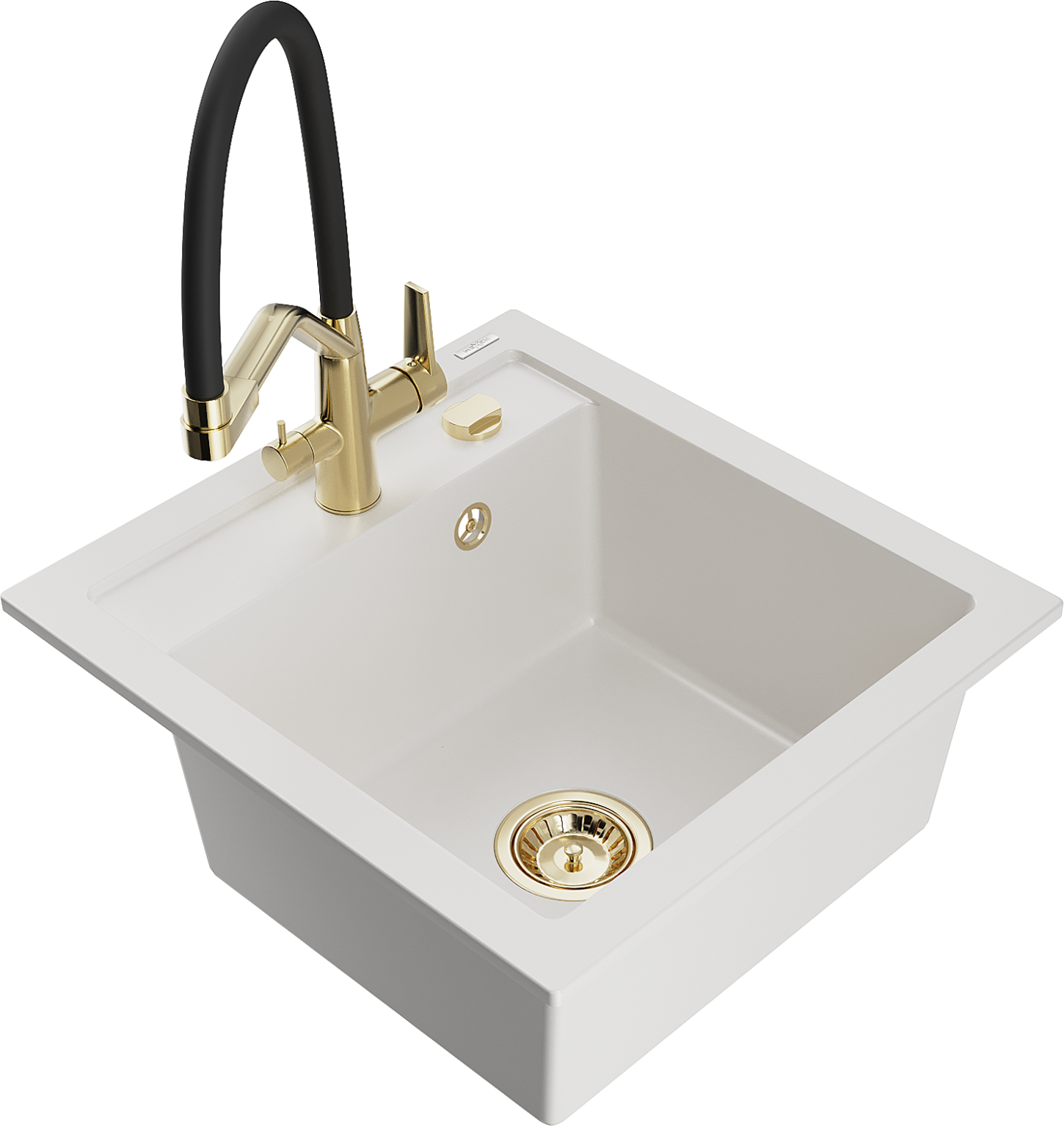 Mexen Vito zlewozmywak granitowy 1-komorowy z baterią kuchenną Duo, biały - 6503-20-671701-57-G