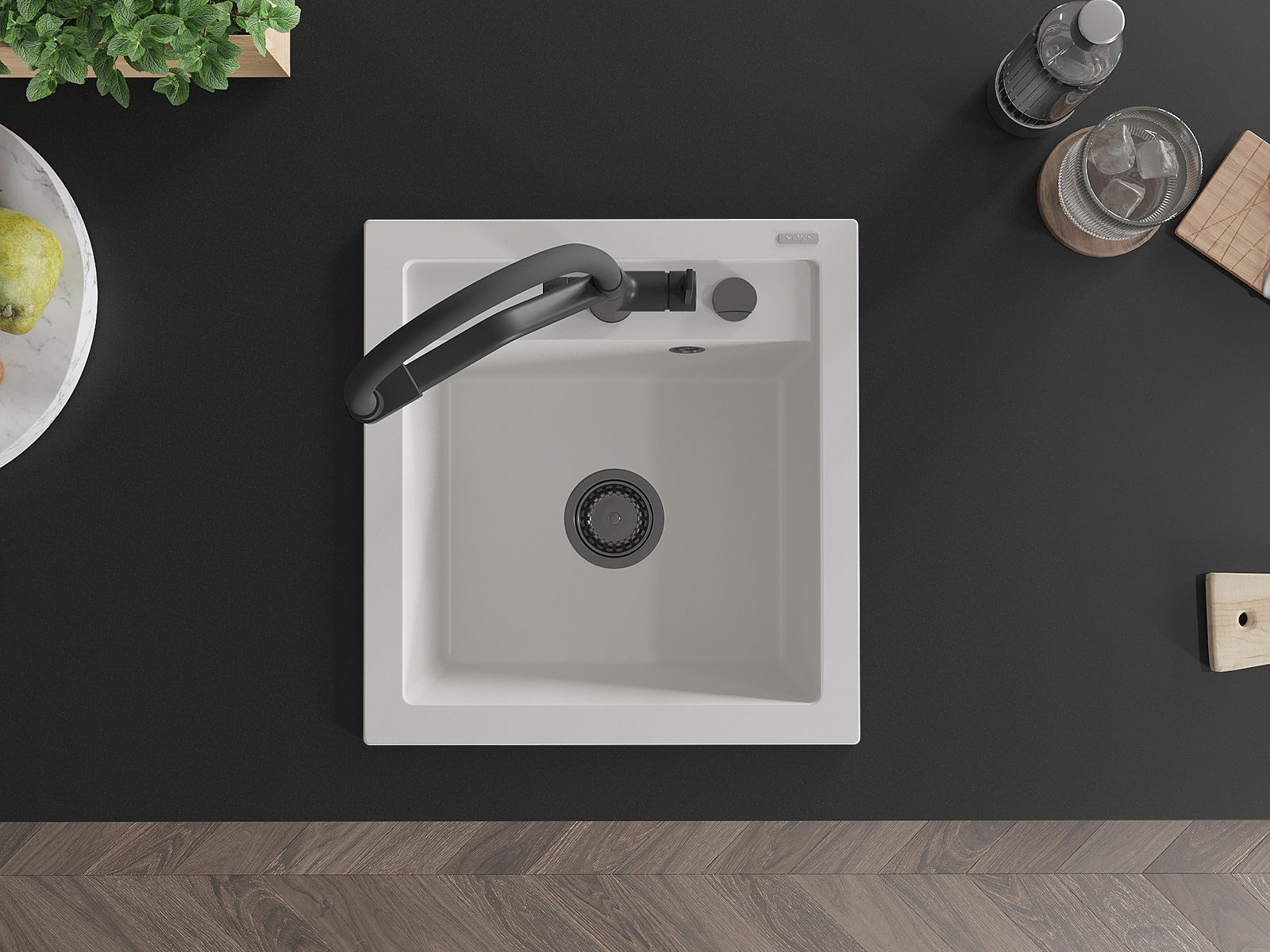 Zlew posiada podfrezowany otwór o średnicy 35 mm do samodzielnego wybicia. Można go wykorzystać m.in. do montażu dozownika na płyn, który wyeliminuje obecność plastikowych butelek w kuchni i nada jej eleganckiego wykończenia.