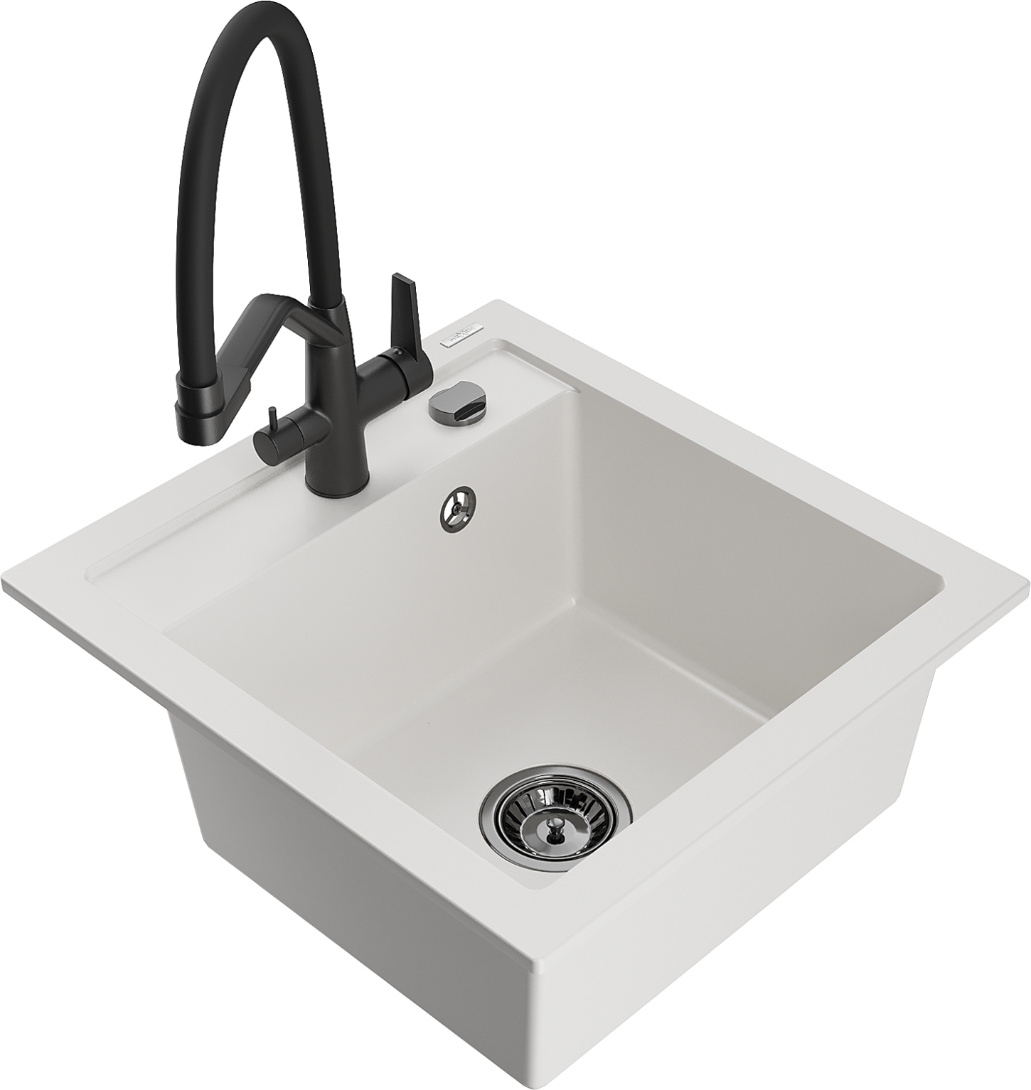 Mexen Vito zlewozmywak granitowy 1-komorowy z baterią kuchenną Duo, biały - 6503-20-671701-70-B