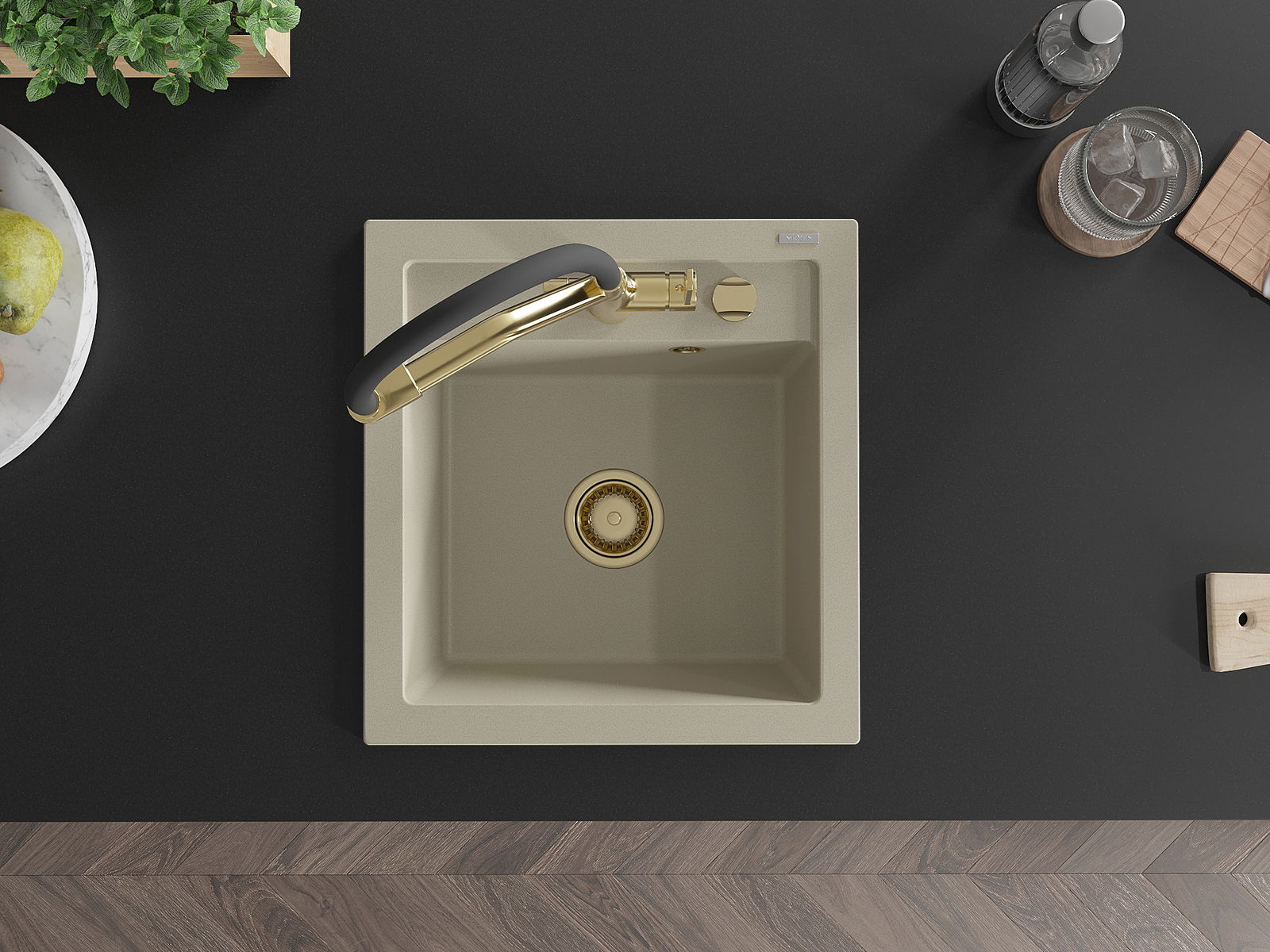 Zlew posiada podfrezowany otwór o średnicy 35 mm do samodzielnego wybicia. Można go wykorzystać m.in. do montażu dozownika na płyn, który wyeliminuje obecność plastikowych butelek w kuchni i nada jej eleganckiego wykończenia.