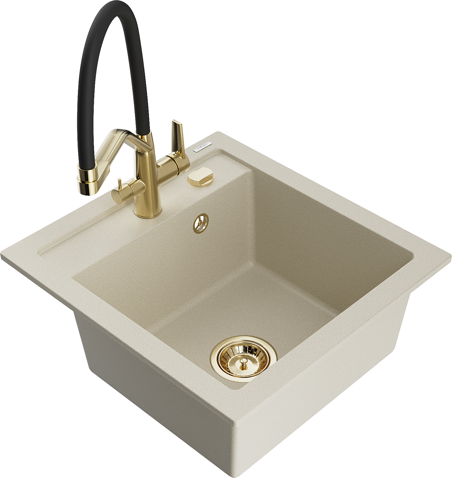 Mexen Vito zlewozmywak granitowy 1-komorowy z baterią kuchenną Duo, beżowy - 6503-69-671701-57-G