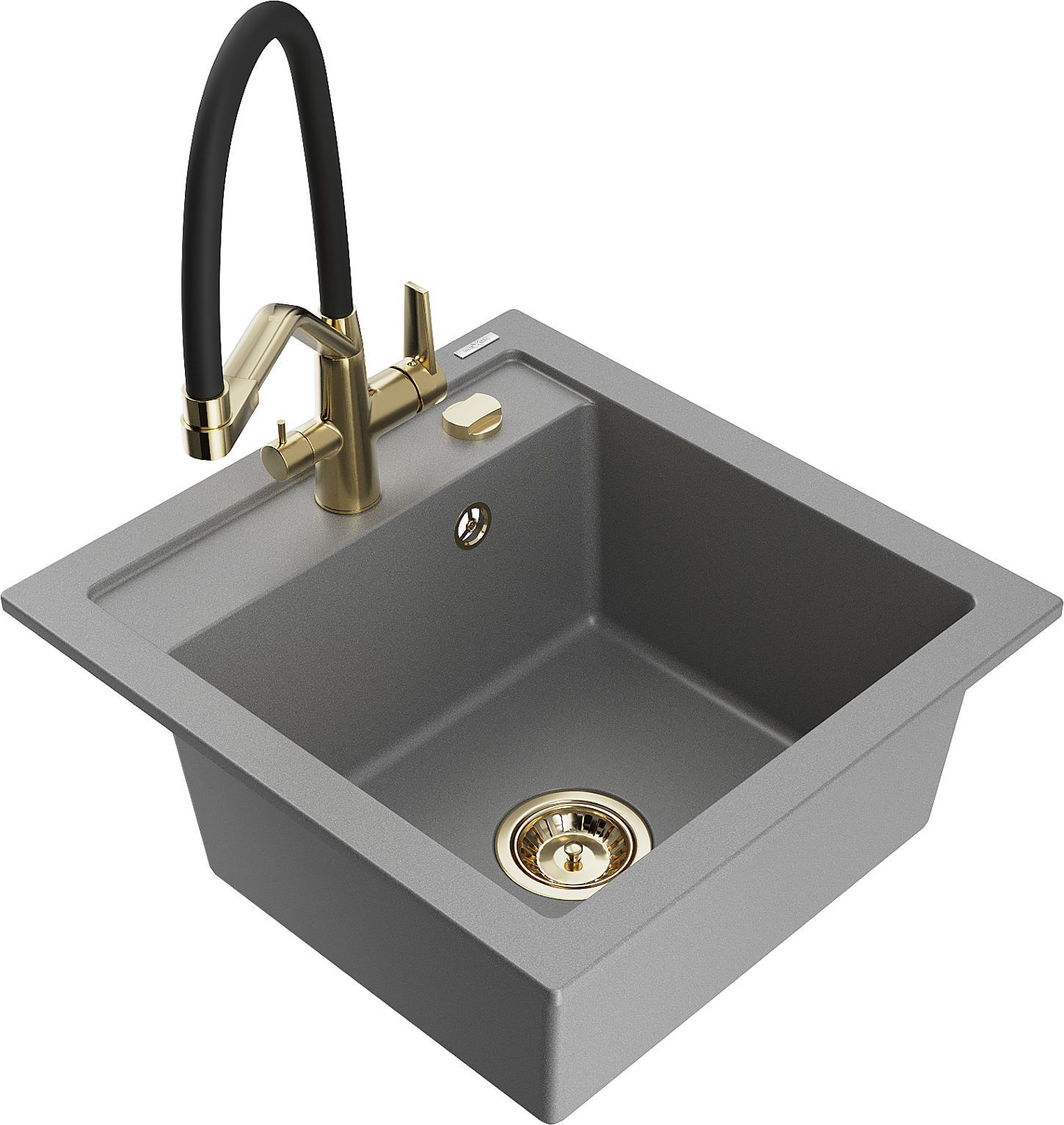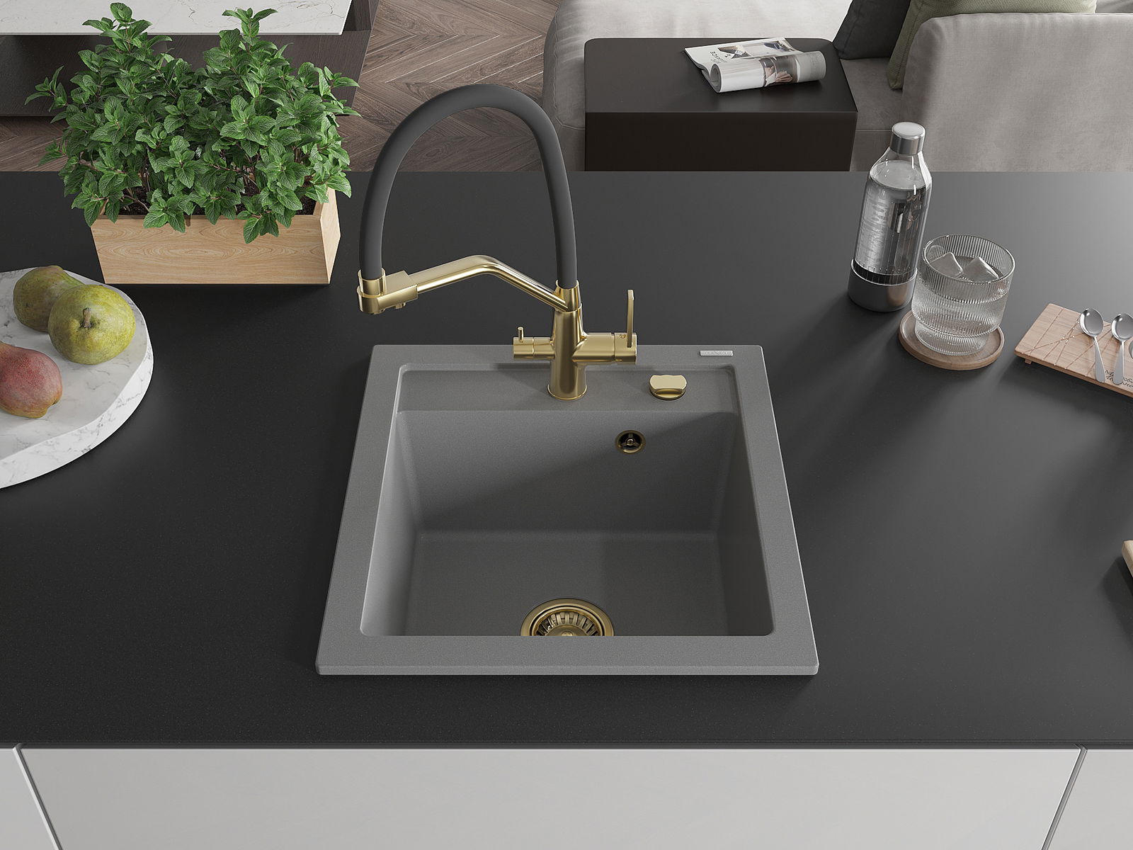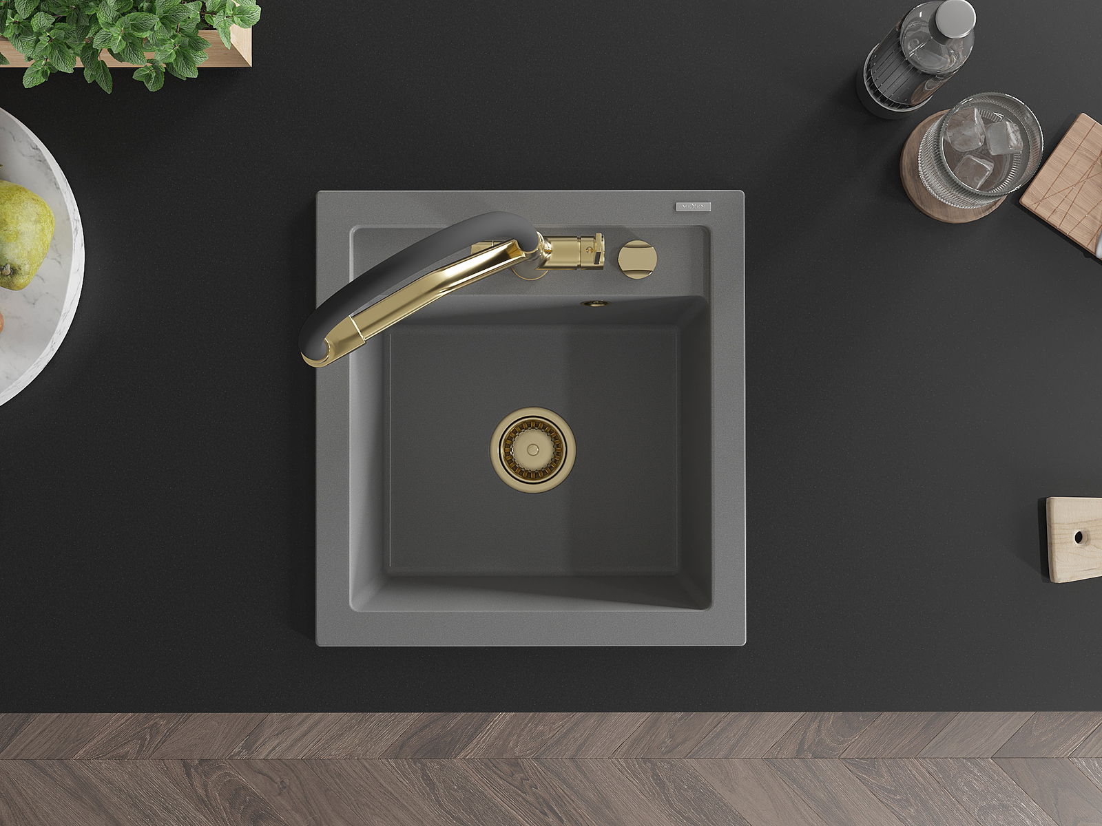 Mexen Vito zlewozmywak granitowy 1-komorowy z baterią kuchenną Duo, szary - 6503-71-671701-57-G