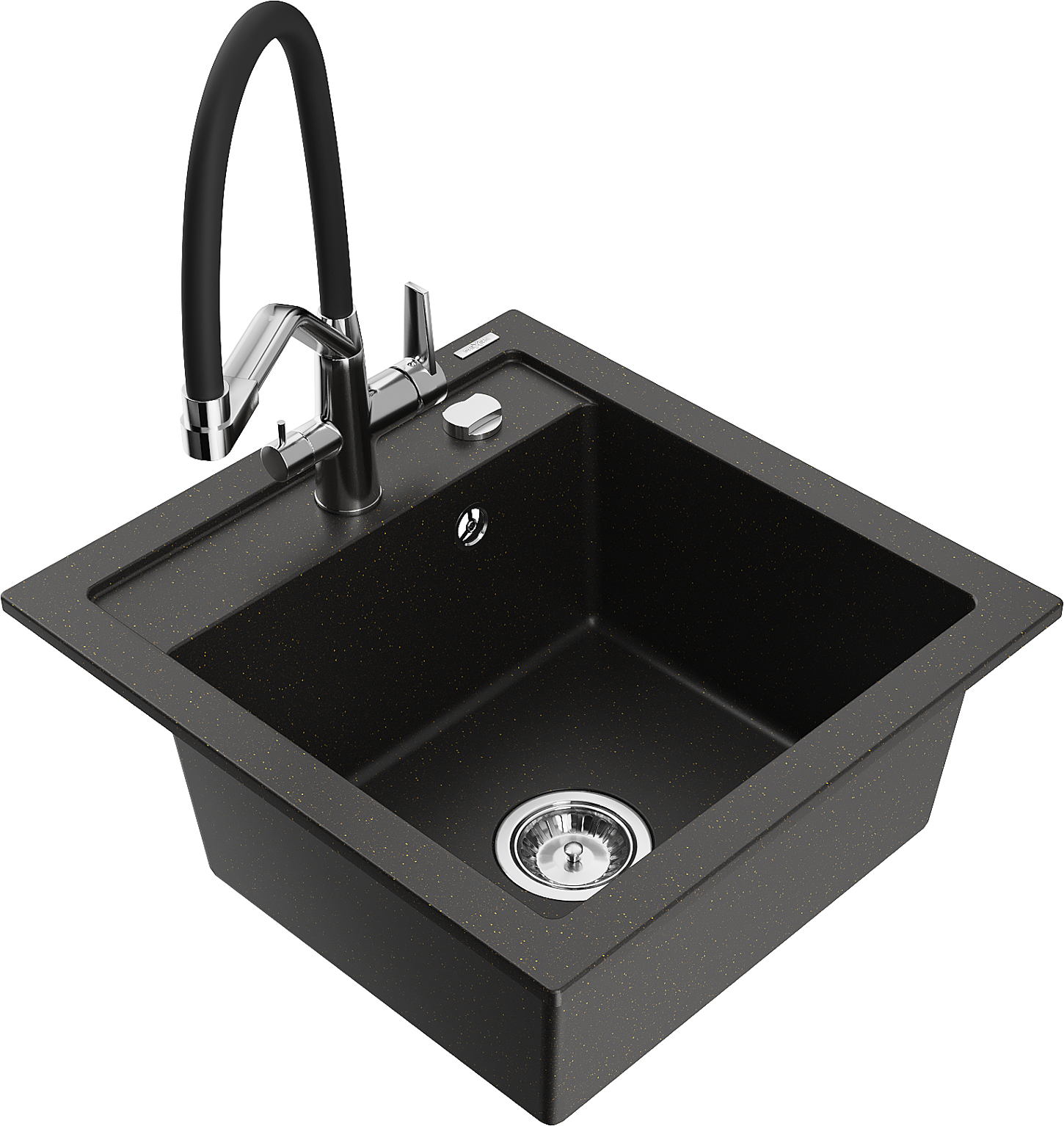 Mexen Vito zlewozmywak granitowy 1-komorowy z baterią kuchenną Duo, czarny/złoty metalik - 6503-75-671701-07