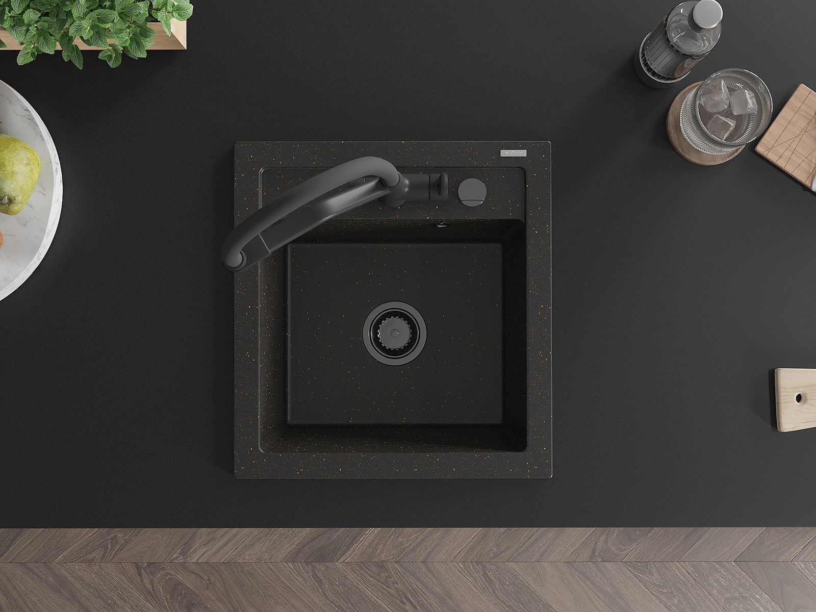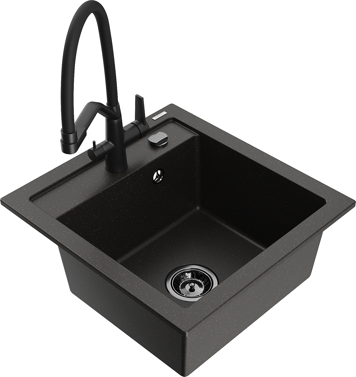 Mexen Vito zlewozmywak granitowy 1-komorowy z baterią kuchenną Duo, czarny/złoty metalik - 6503-75-671701-70-B