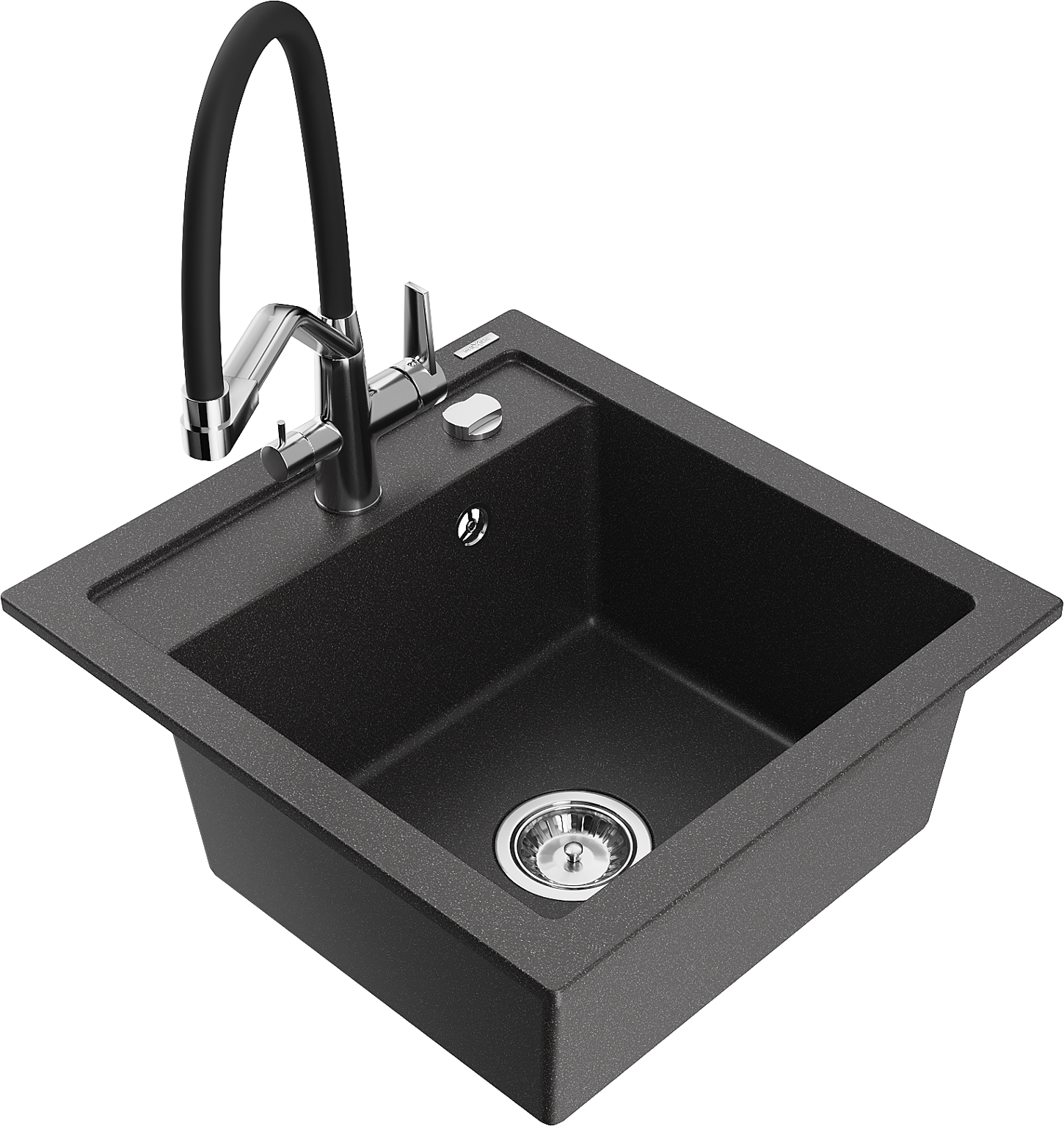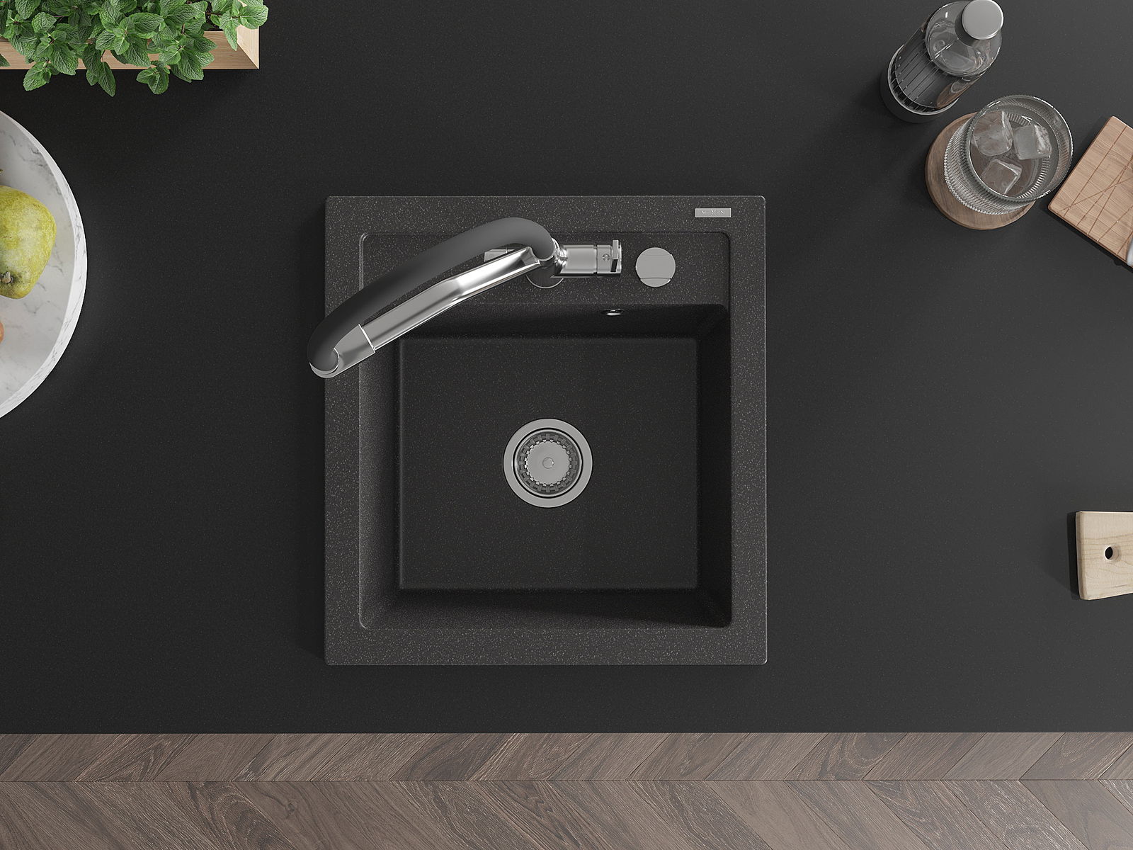 Mexen Vito zlewozmywak granitowy 1-komorowy z baterią kuchenną Duo, czarny nakrapiany - 6503-76-671701-07