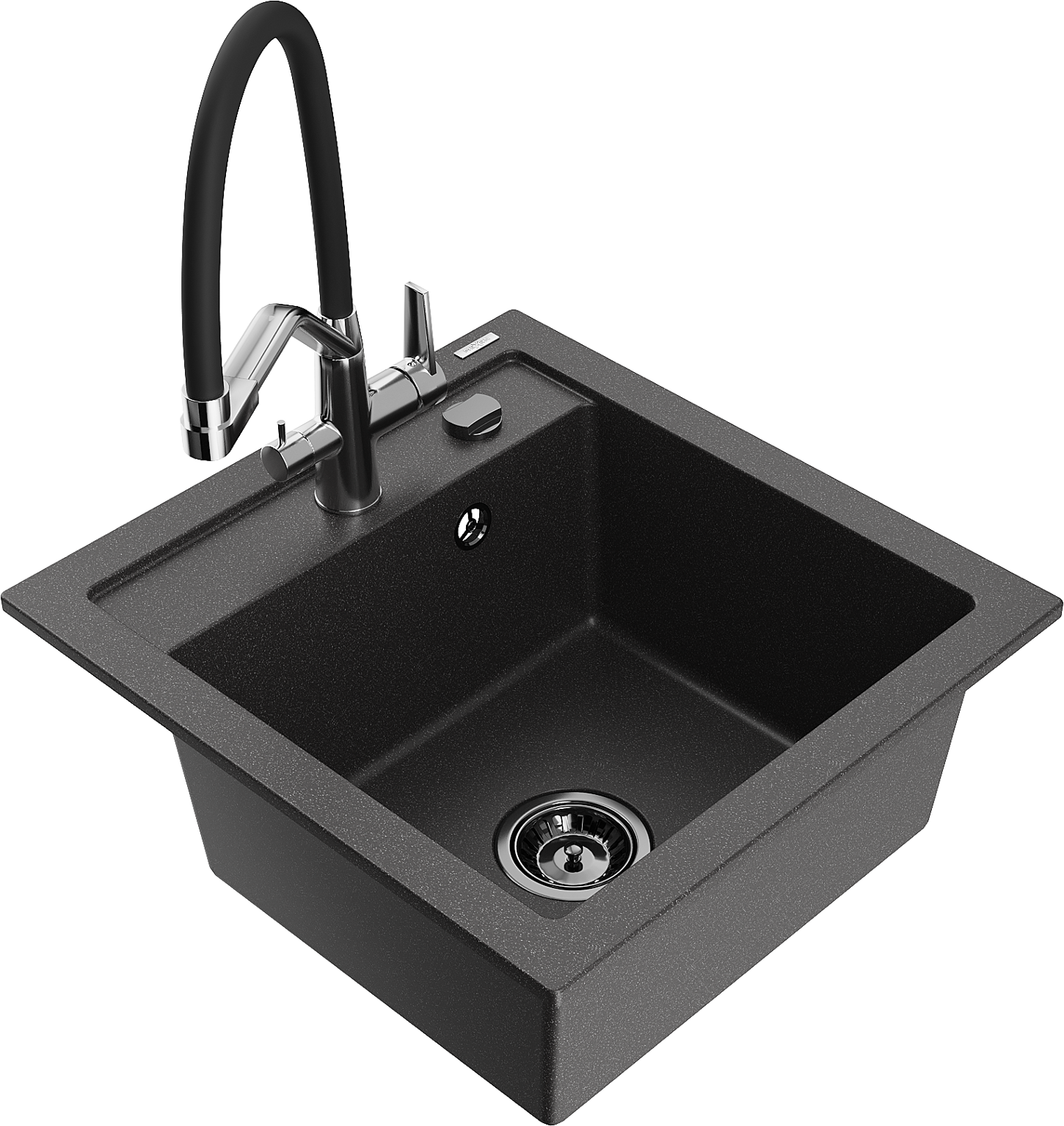 Mexen Vito zlewozmywak granitowy 1-komorowy z baterią kuchenną Duo, czarny nakrapiany - 6503-76-671701-07-B