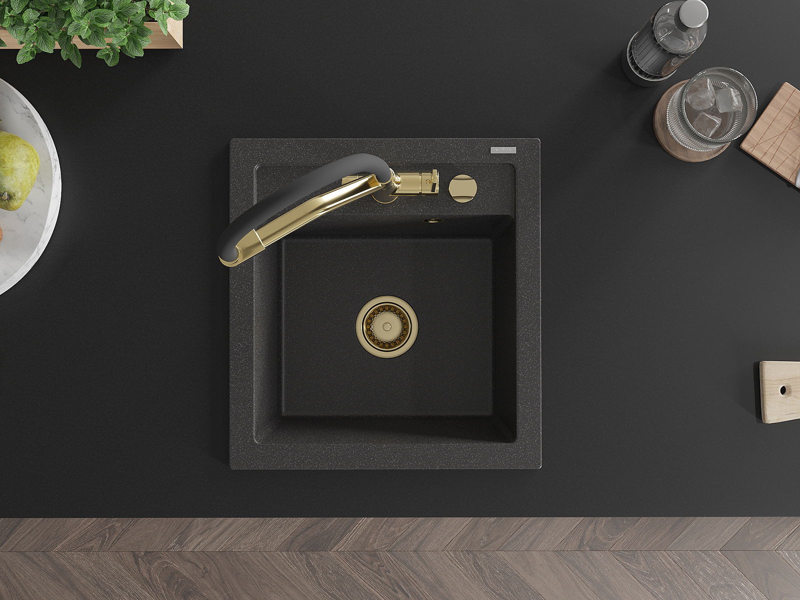 Zlew posiada podfrezowany otwór o średnicy 35 mm do samodzielnego wybicia. Można go wykorzystać m.in. do montażu dozownika na płyn, który wyeliminuje obecność plastikowych butelek w kuchni i nada jej eleganckiego wykończenia.