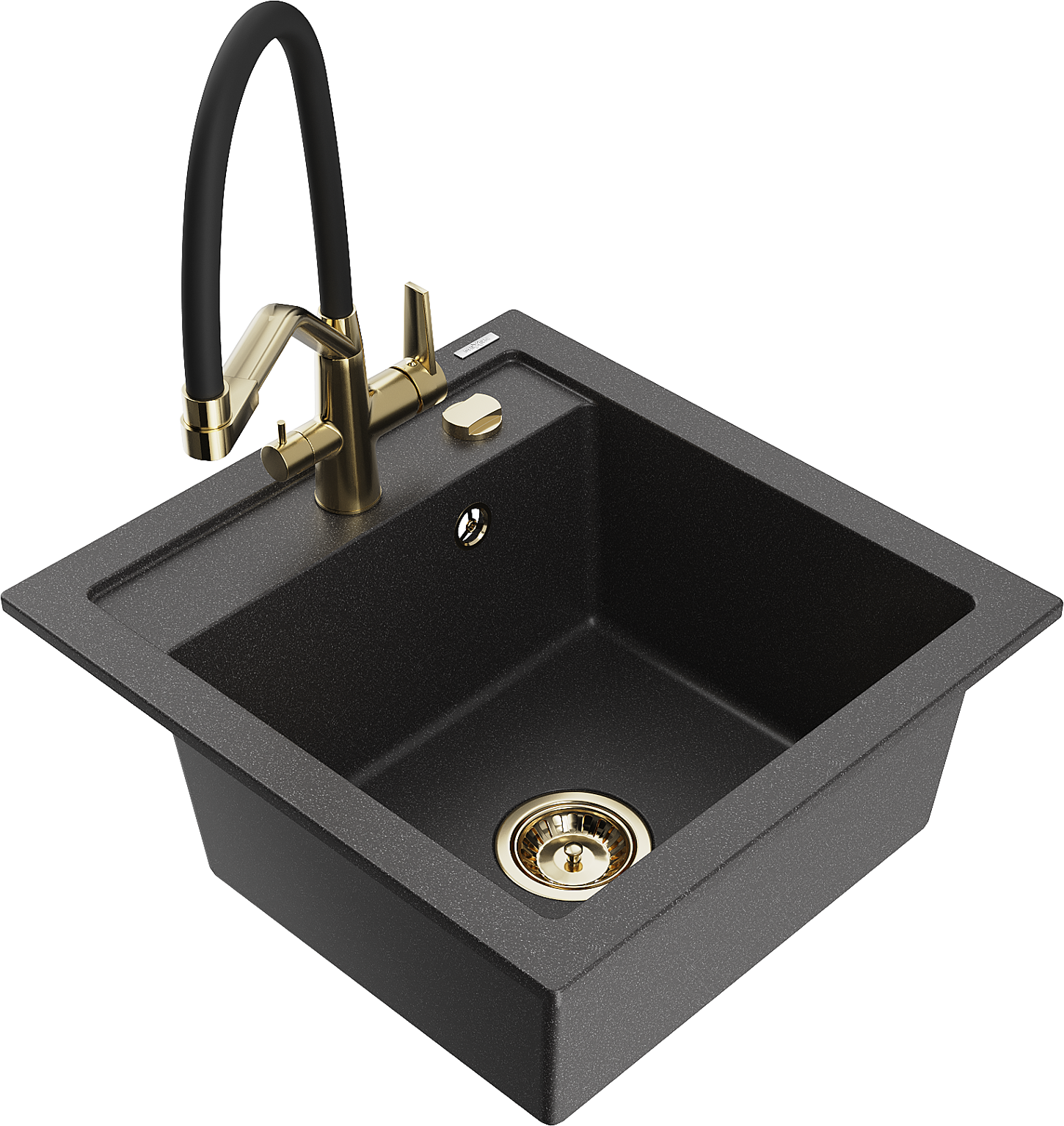 Mexen Vito zlewozmywak granitowy 1-komorowy z baterią kuchenną Duo, czarny nakrapiany - 6503-76-671701-57-G
