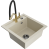 Zlewozmywak został wykonany z wysokiej jakości granitu. Stanowi eleganckie, a przede wszystkim praktyczne uzupełnienie każdej kuchni, niezależnie od jej stylu. Wysoka jakość oraz trwałość granitu zapewniają wieloletnie użytkowanie.