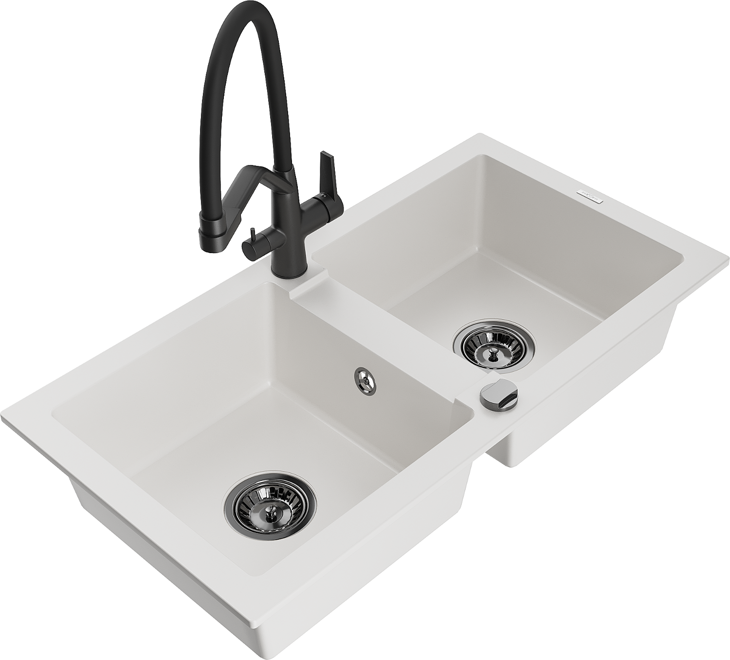 Mexen Mario zlewozmywak granitowy 2-komorowy z baterią kuchenną Duo, biały - 6504-20-671701-70-B