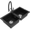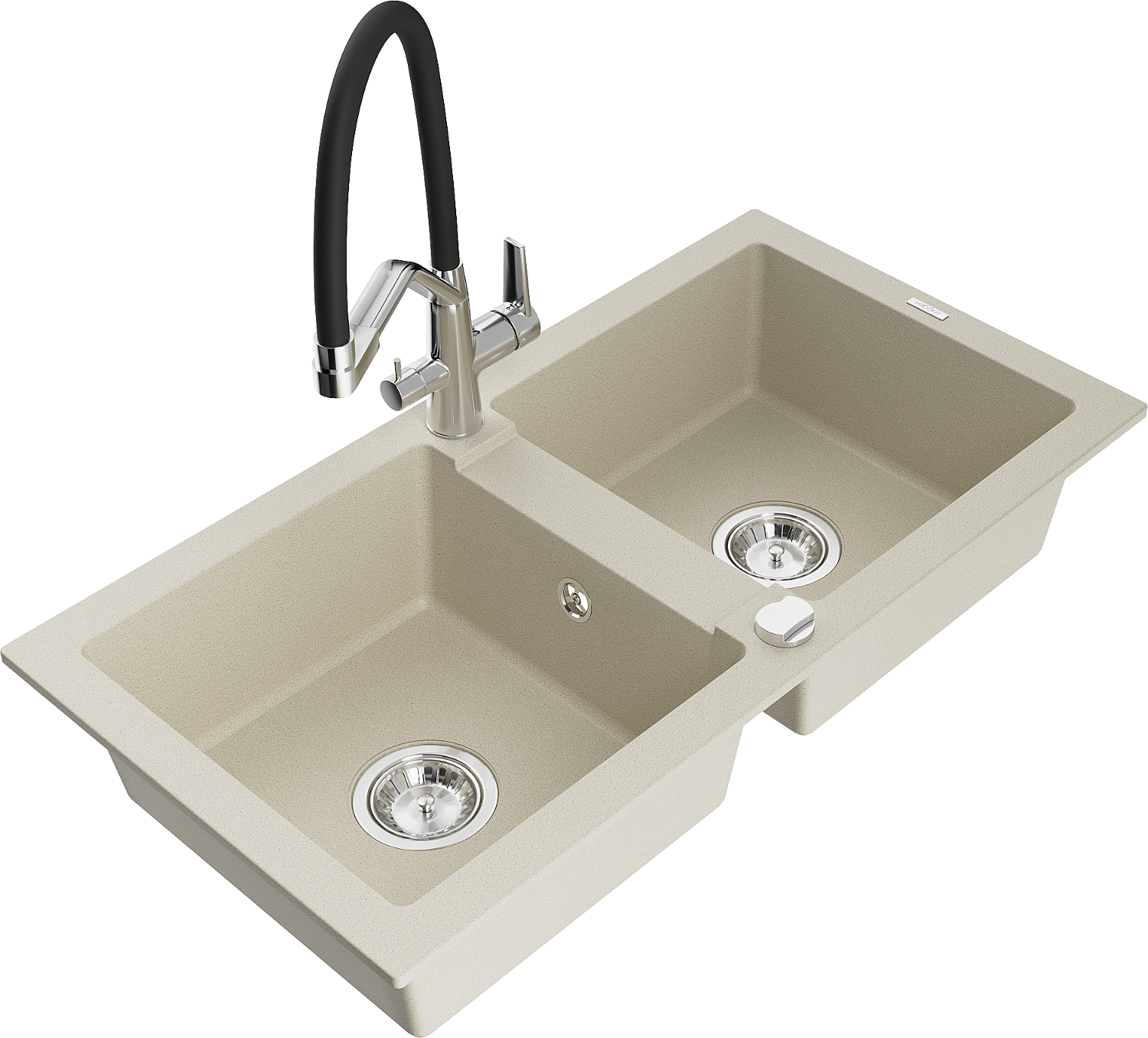Mexen Mario zlewozmywak granitowy 2-komorowy z baterią kuchenną Duo, beżowy - 6504-69-671701-07
