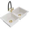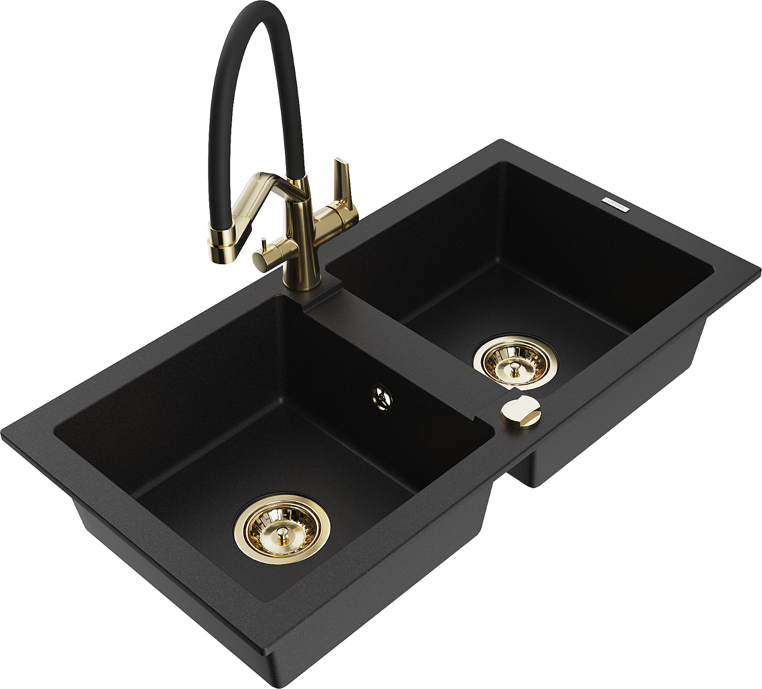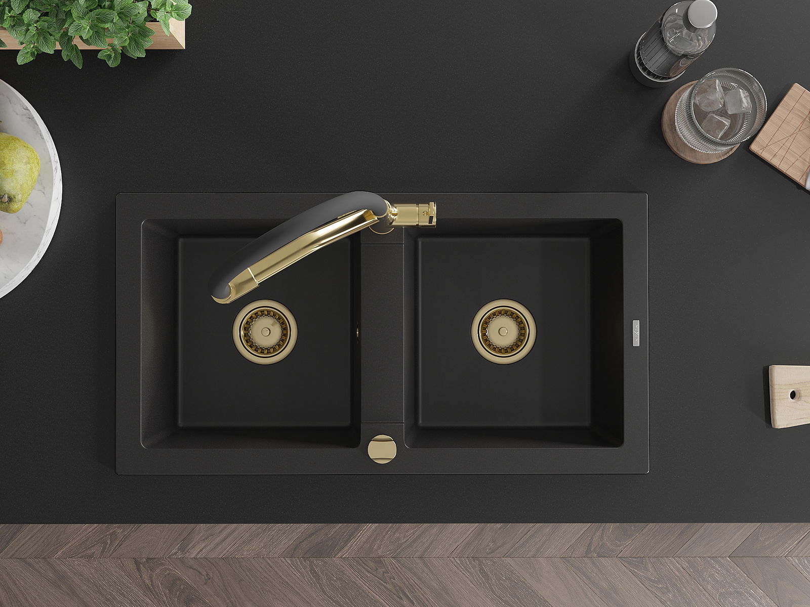 Mexen Mario zlewozmywak granitowy 2-komorowy z baterią kuchenną Duo, czarny - 6504-77-671701-57-G
