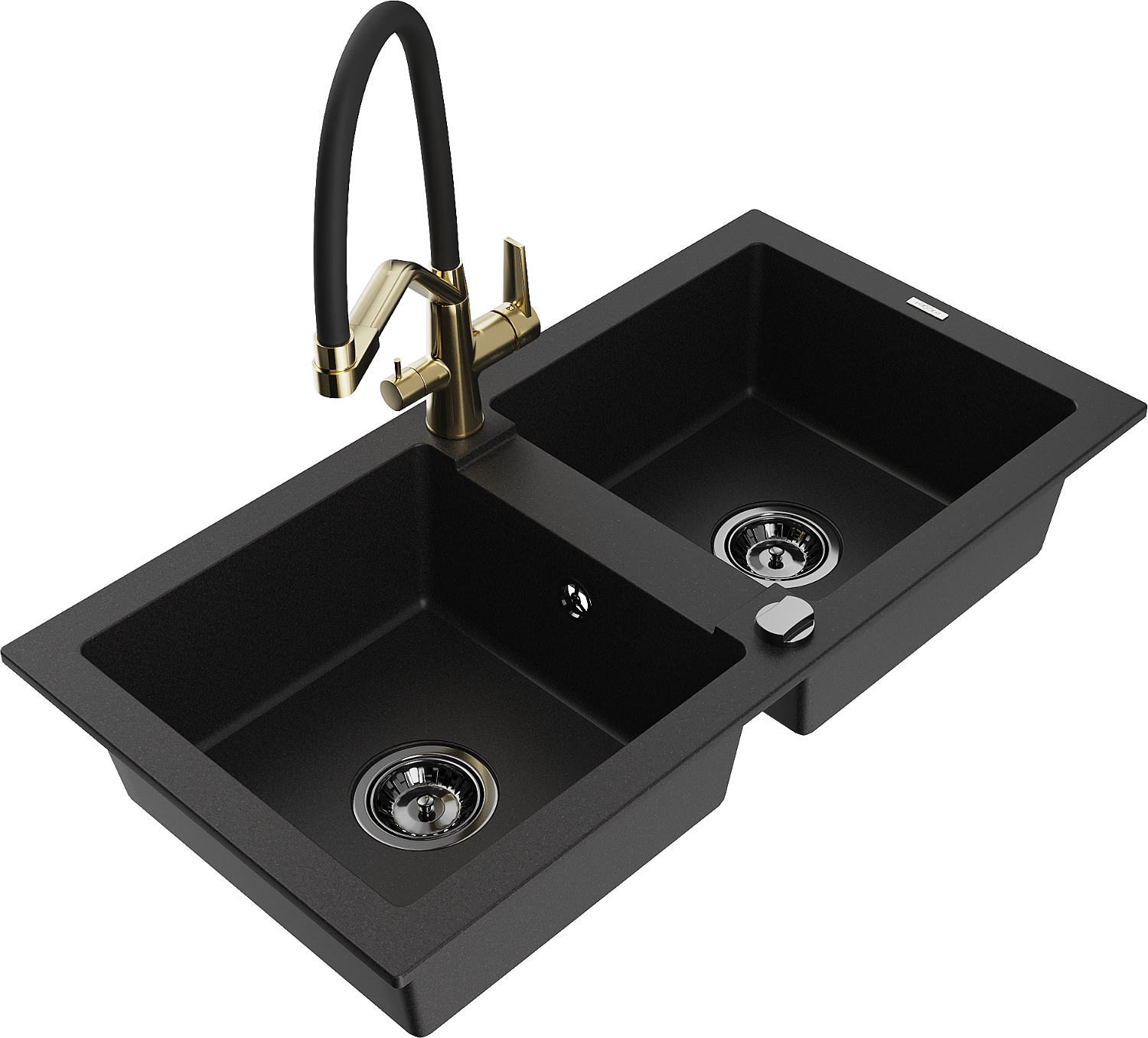 Mexen Mario zlewozmywak granitowy 2-komorowy z baterią kuchenną Duo, czarny - 6504-77-671701-57-B