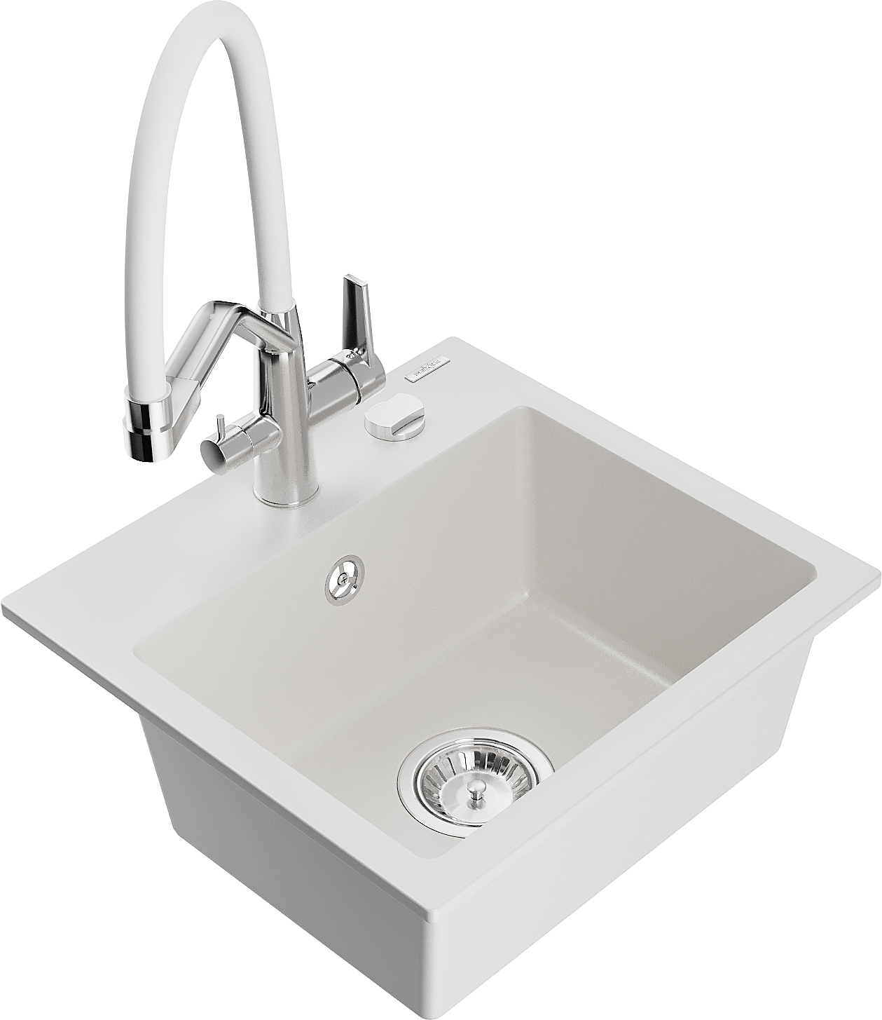Mexen Milo zlewozmywak granitowy 1-komorowy z baterią kuchenną Duo, biały - 6505-20-671701-02