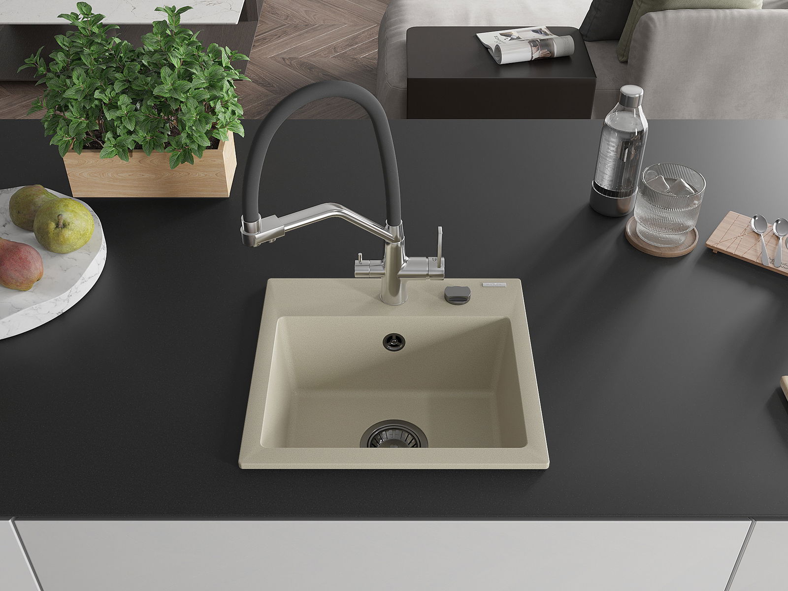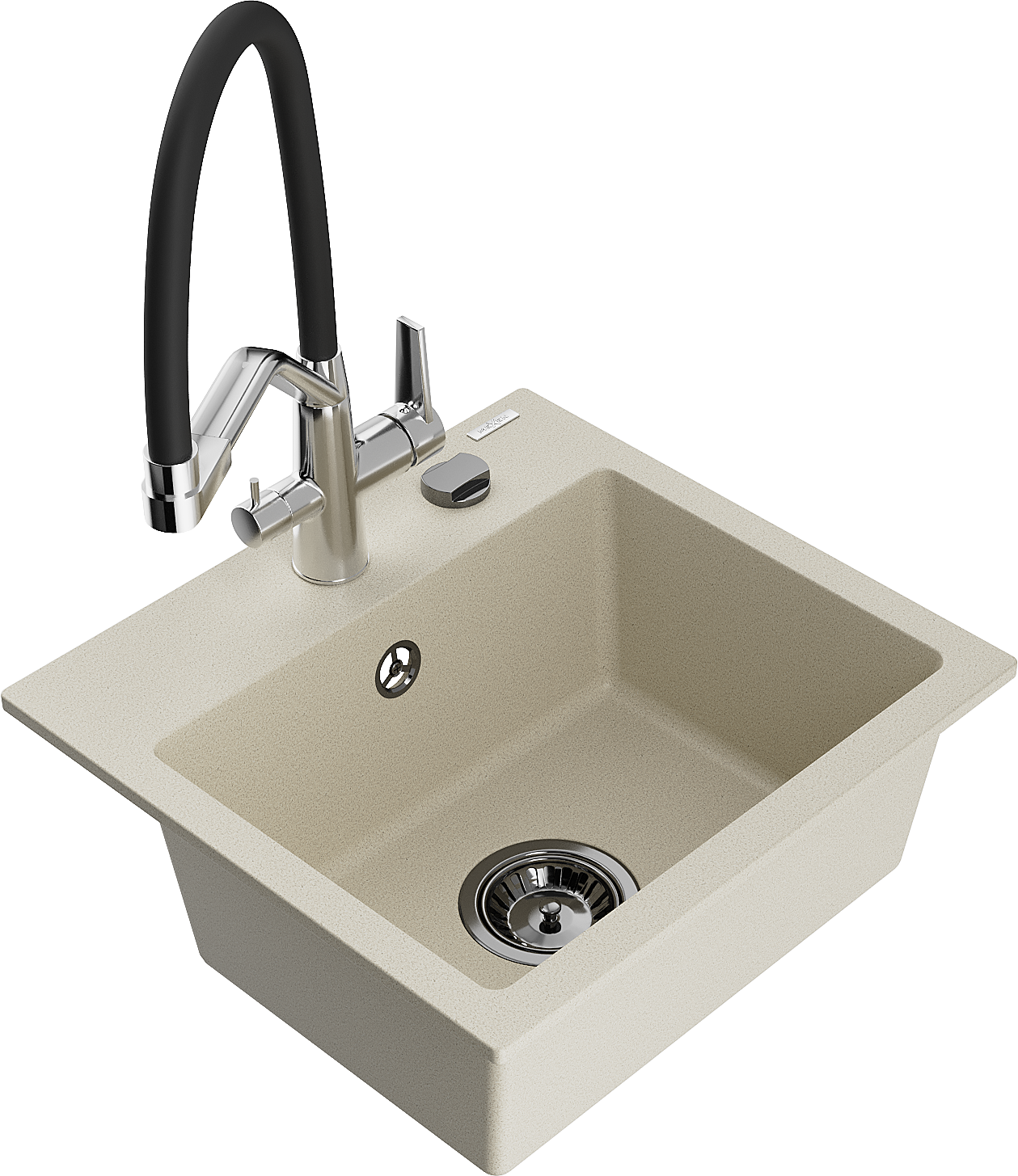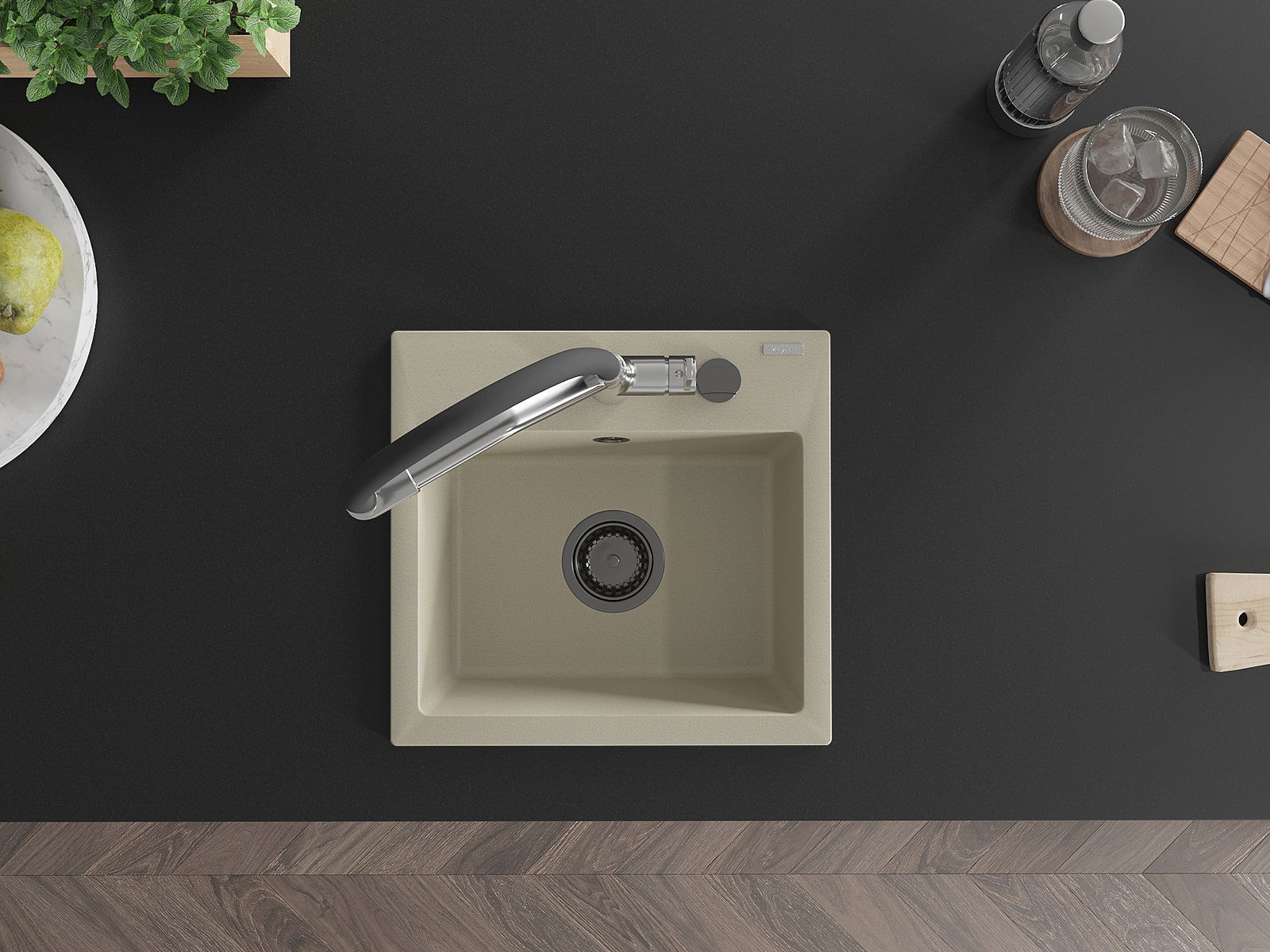 Mexen Milo zlewozmywak granitowy 1-komorowy z baterią kuchenną Duo, beżowy - 6505-69-671701-07-B