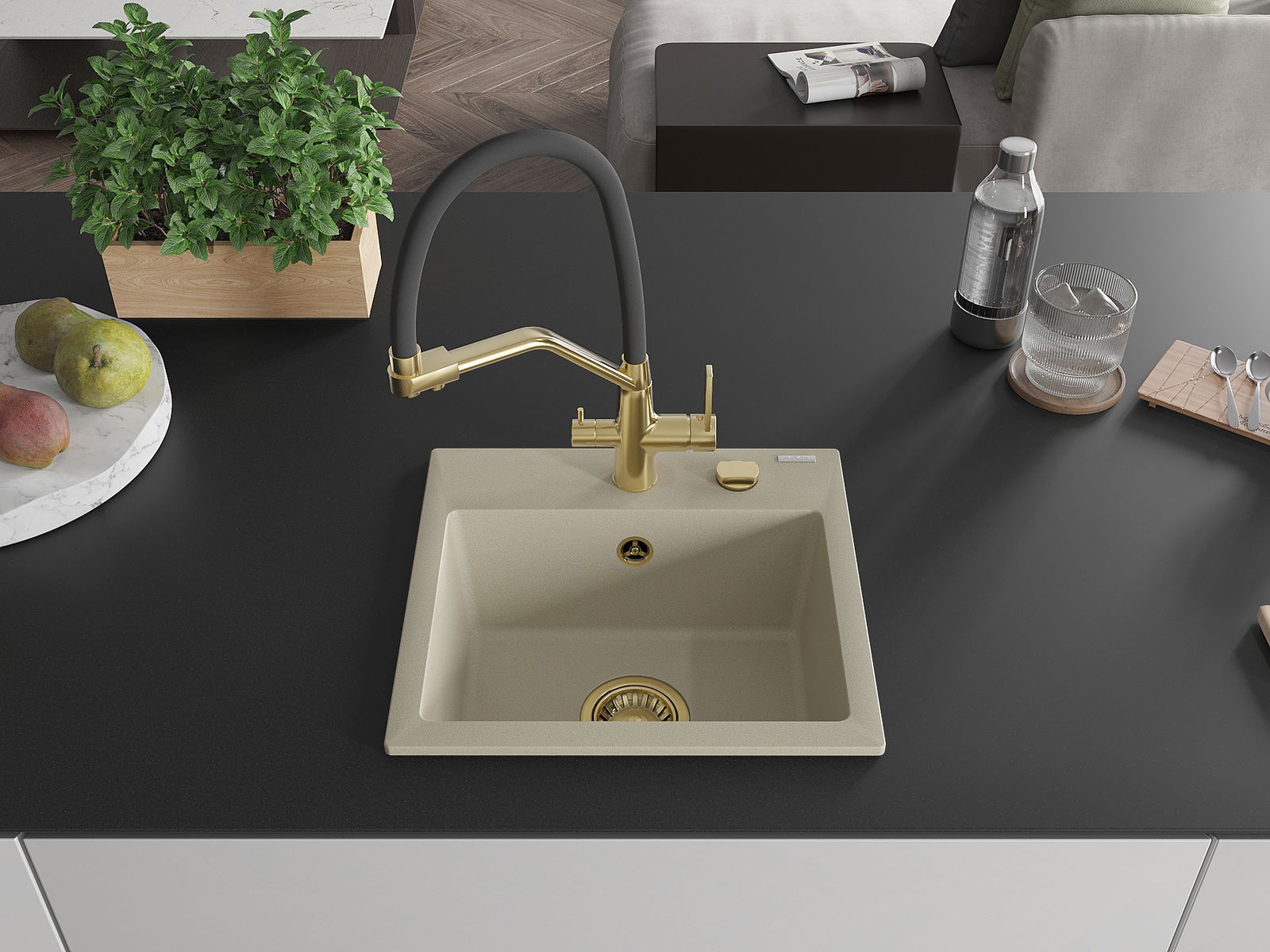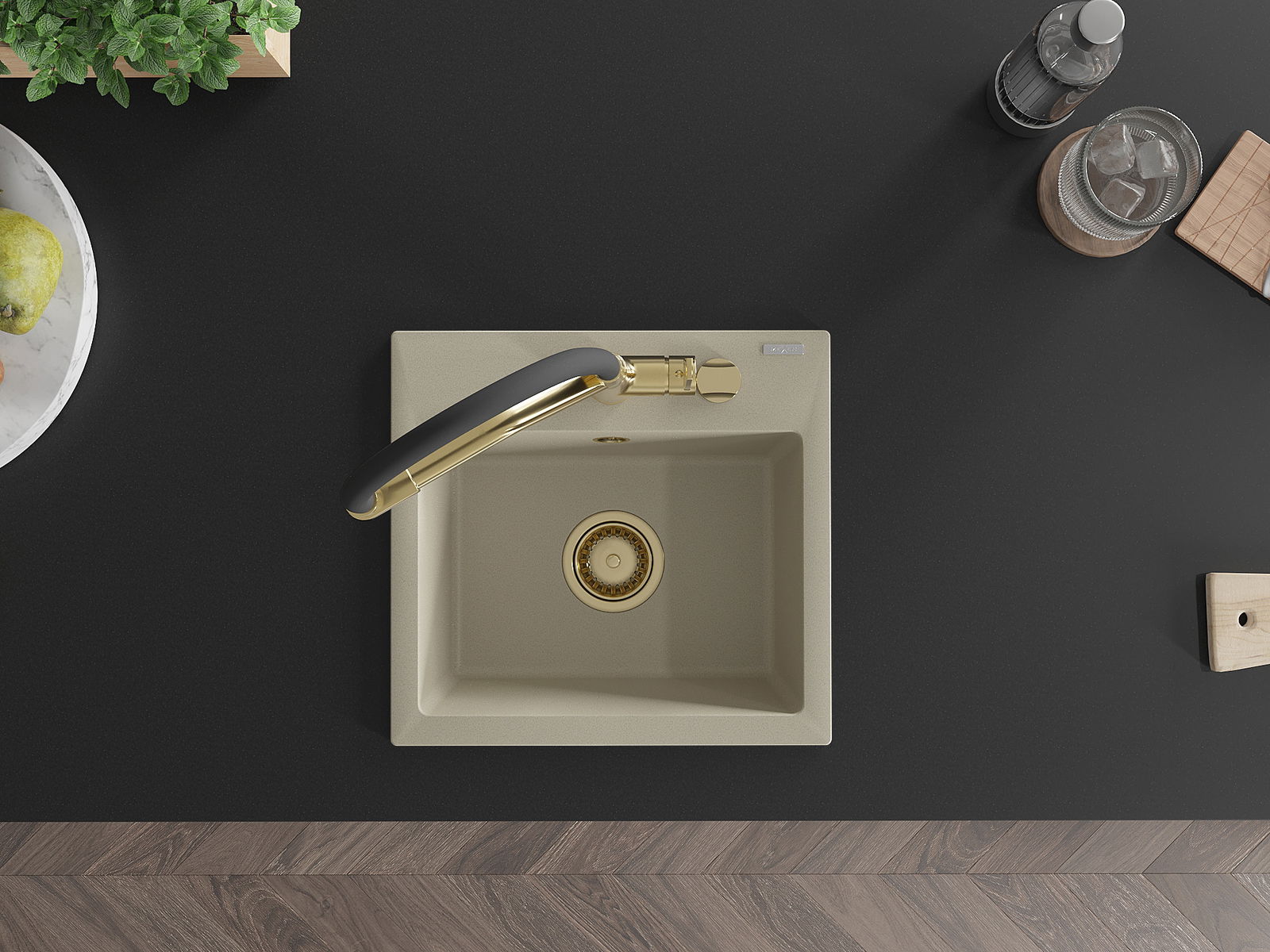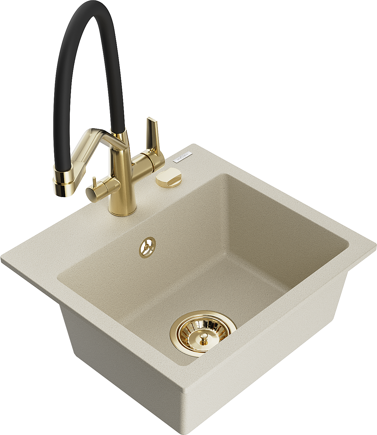 Mexen Milo zlewozmywak granitowy 1-komorowy z baterią kuchenną Duo, beżowy - 6505-69-671701-57-G