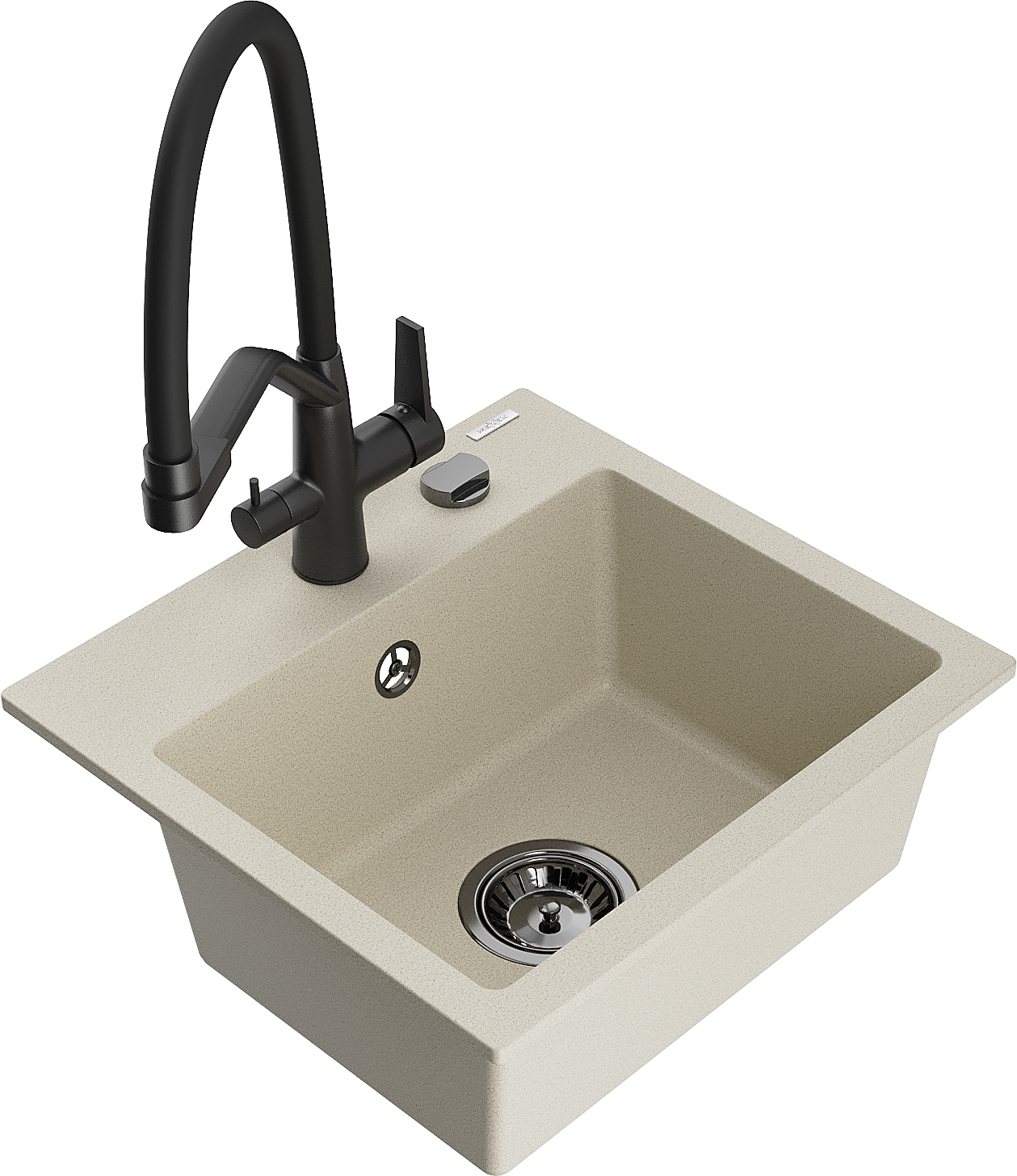 Mexen Milo zlewozmywak granitowy 1-komorowy z baterią kuchenną Duo, beżowy - 6505-69-671701-70-B