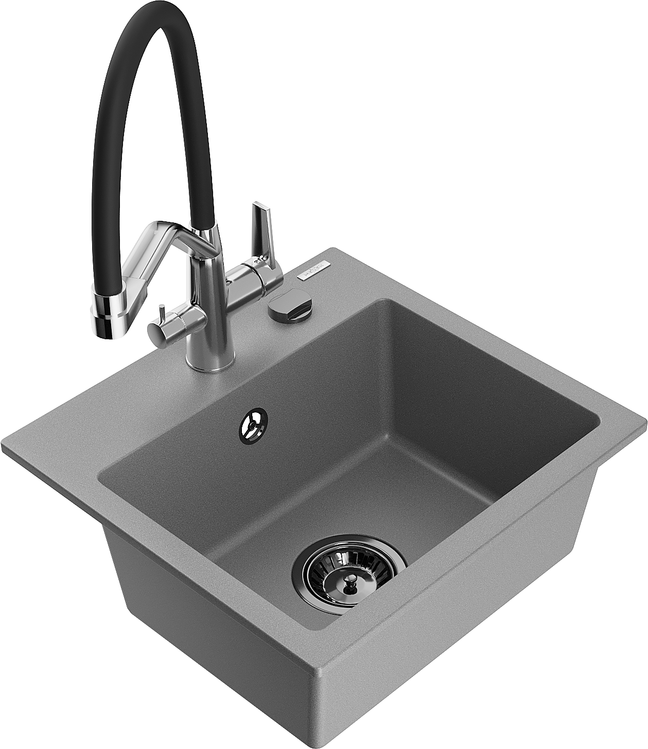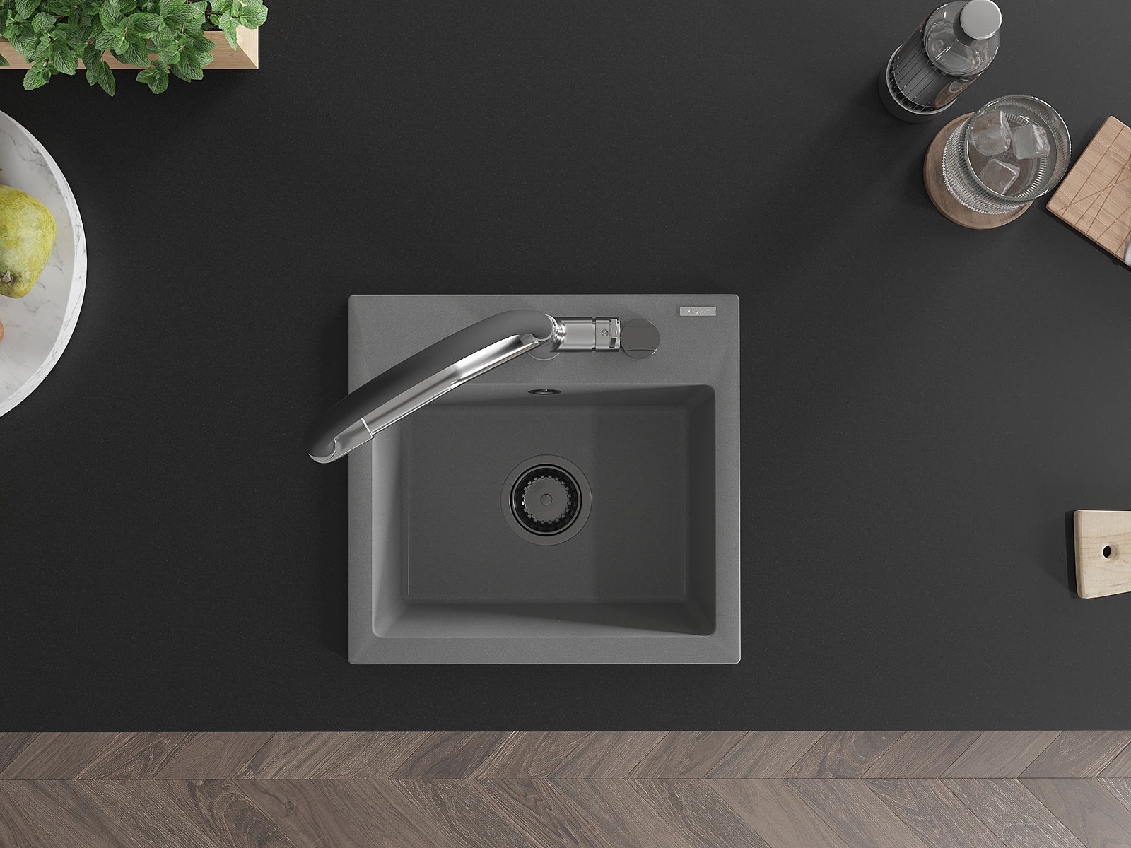 Mexen Milo zlewozmywak granitowy 1-komorowy z baterią kuchenną Duo, szary - 6505-71-671701-07-B