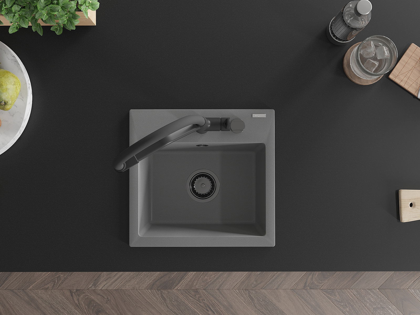 Zlew posiada podfrezowany otwór o średnicy 35 mm do samodzielnego wybicia. Można go wykorzystać m.in. do montażu dozownika na płyn, który wyeliminuje obecność plastikowych butelek w kuchni i nada jej eleganckiego wykończenia.